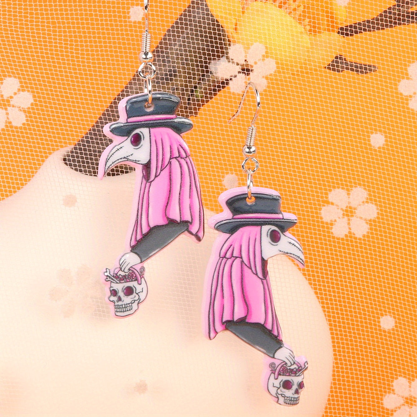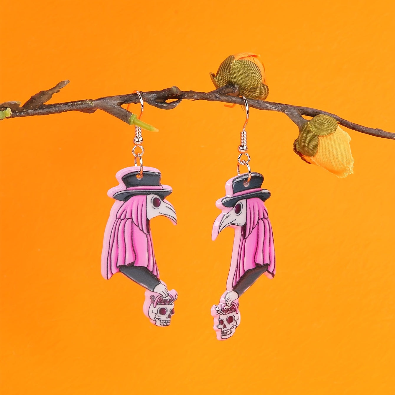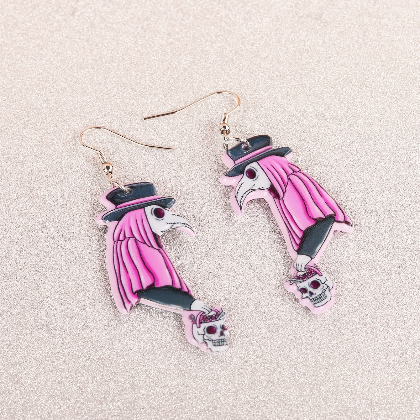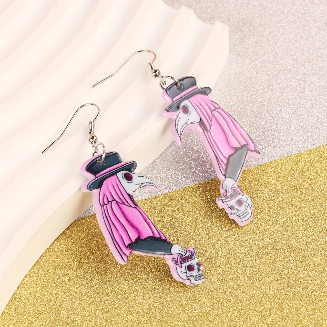 These acrylic dangle earrings are perfect for Halloween, featuring a skull man ghost design in a retro goth style. They make a creative and spooky gift for women and girls.