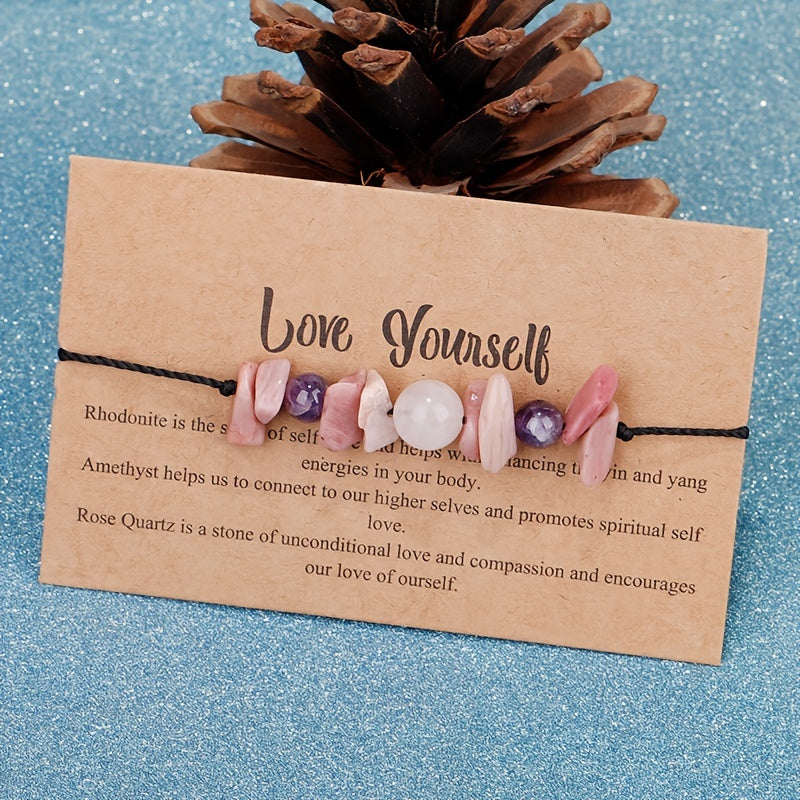 This bracelet features irregular crystal stone beads on a rope design, perfect for yoga, meditation, and anxiety relief.