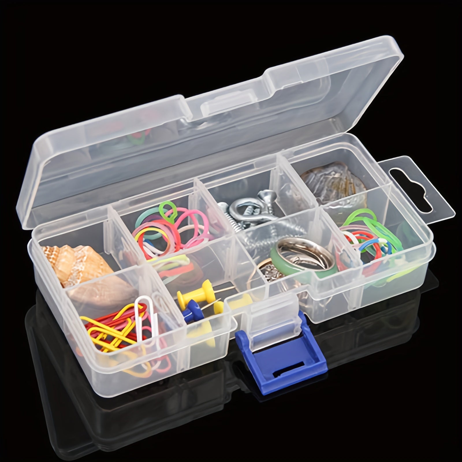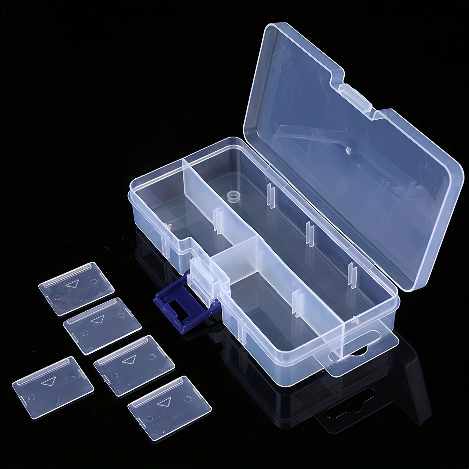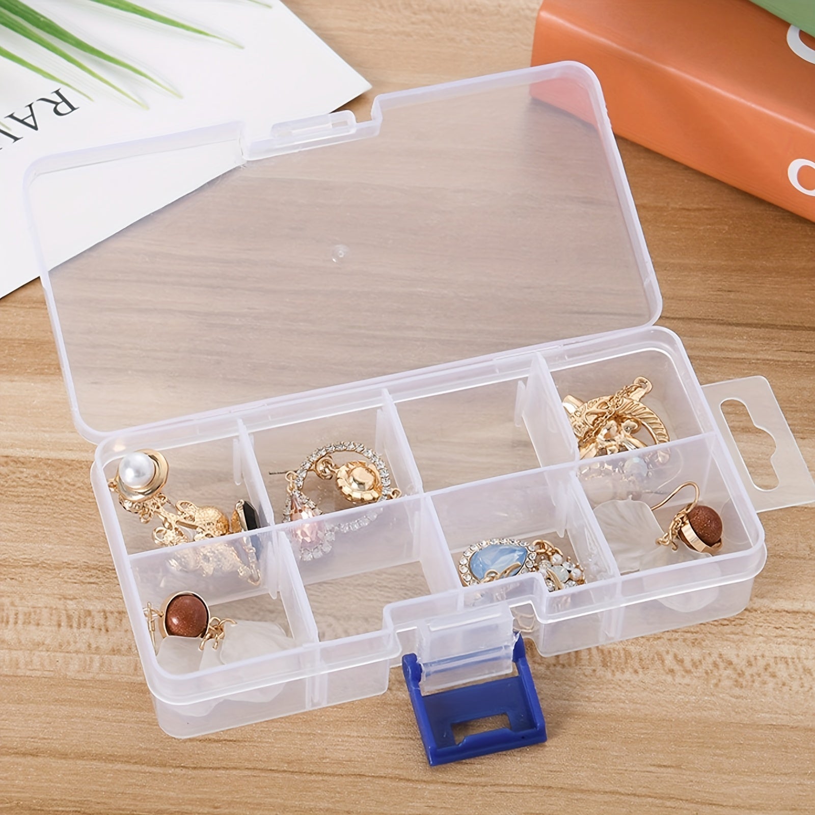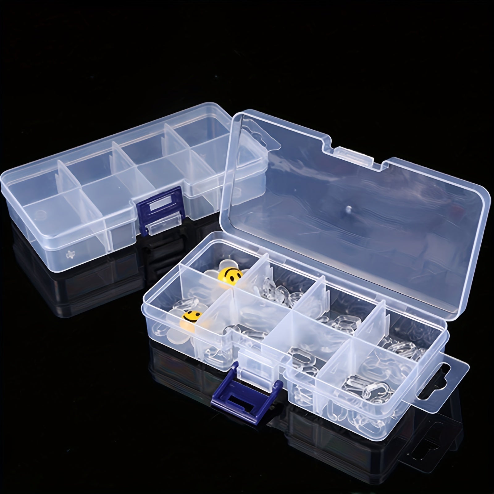 Keep your earrings, beads, craft supplies, and more organized with this portable storage box. The transparent design allows you to easily see the contents inside.