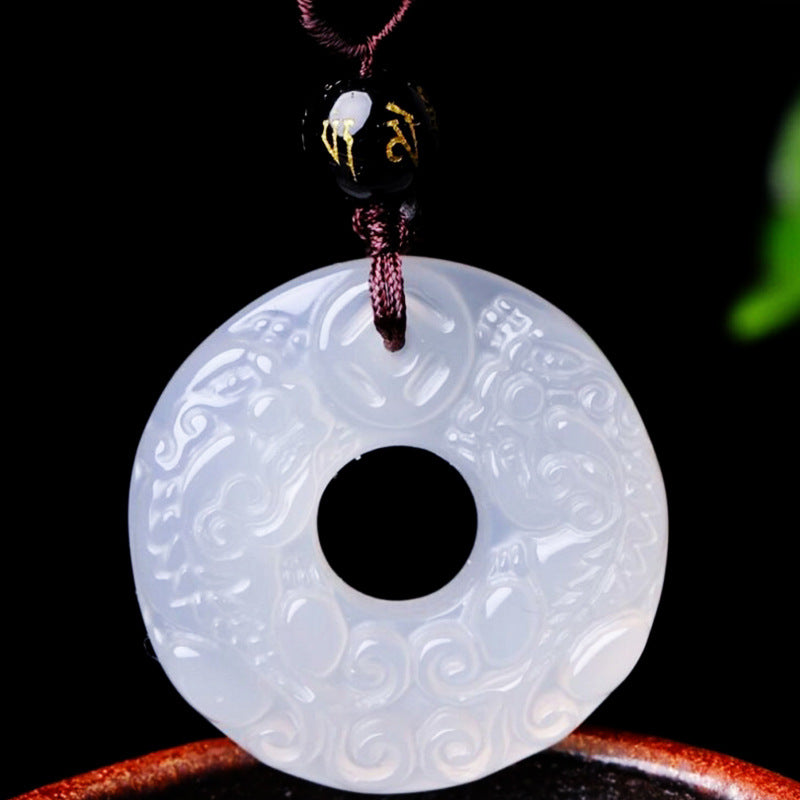 This pendant features a beautiful Agate Chalcedony double fair clasp design, perfect for both men and women.