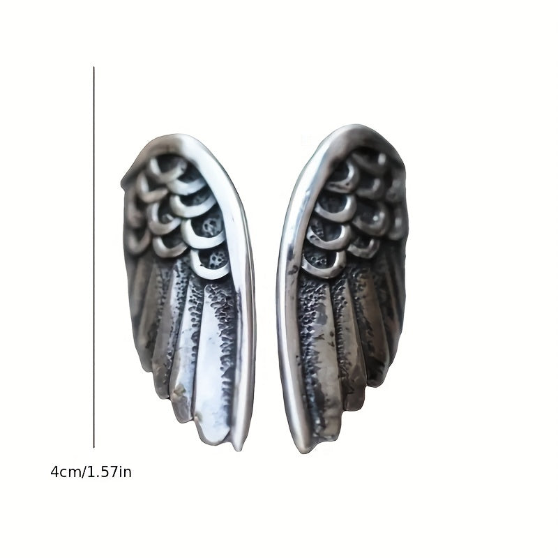 This open ring features a retro design with angel wings, perfect for men. Made of alloy with dyed finish.