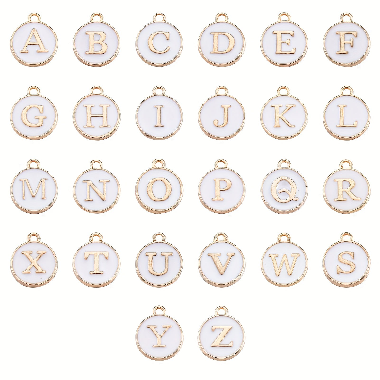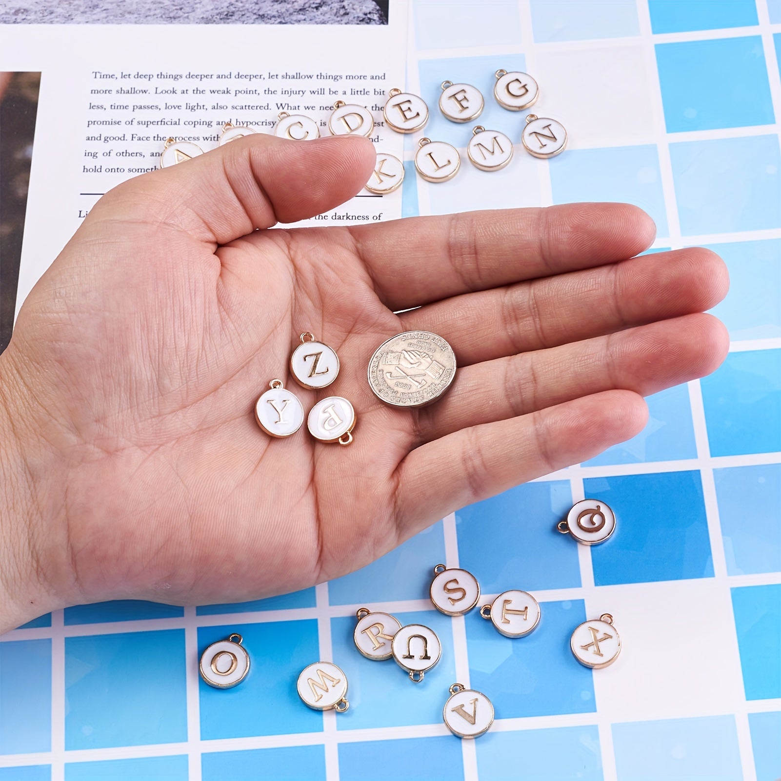 Create personalized jewelry with this set of alloy enamel English letters. Ideal for necklaces, bracelets, and earrings.