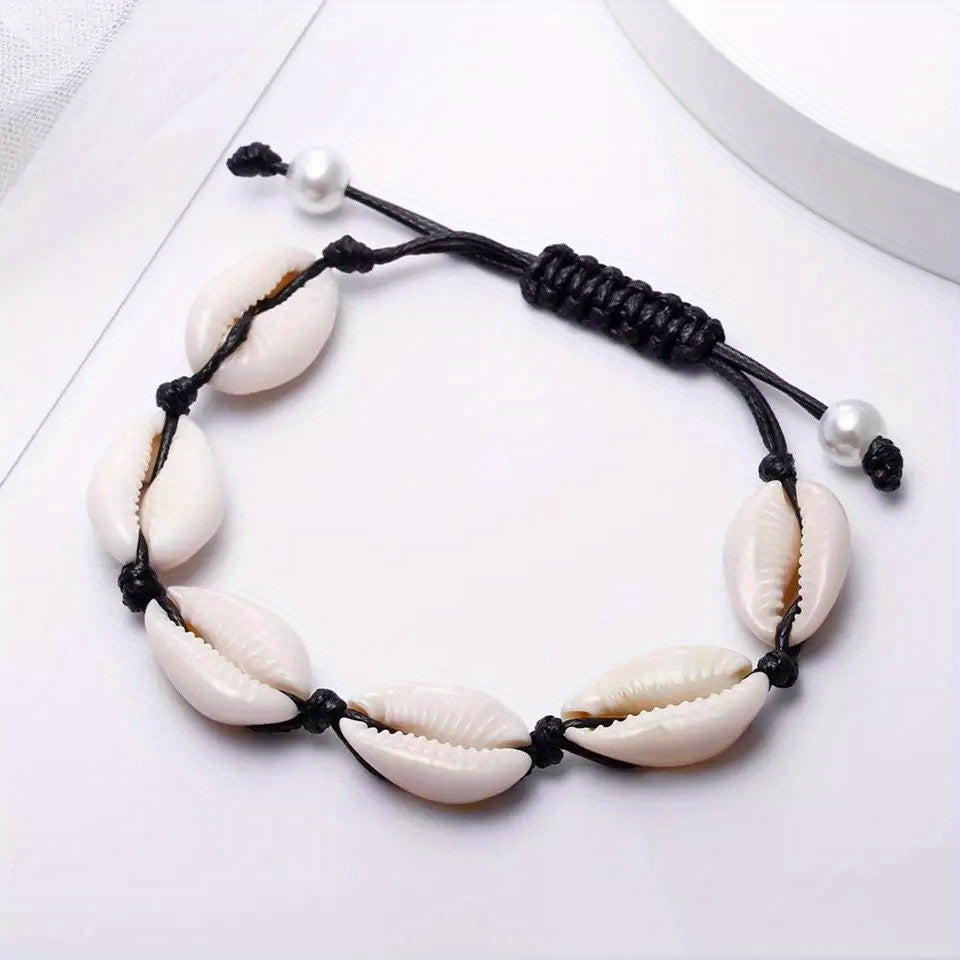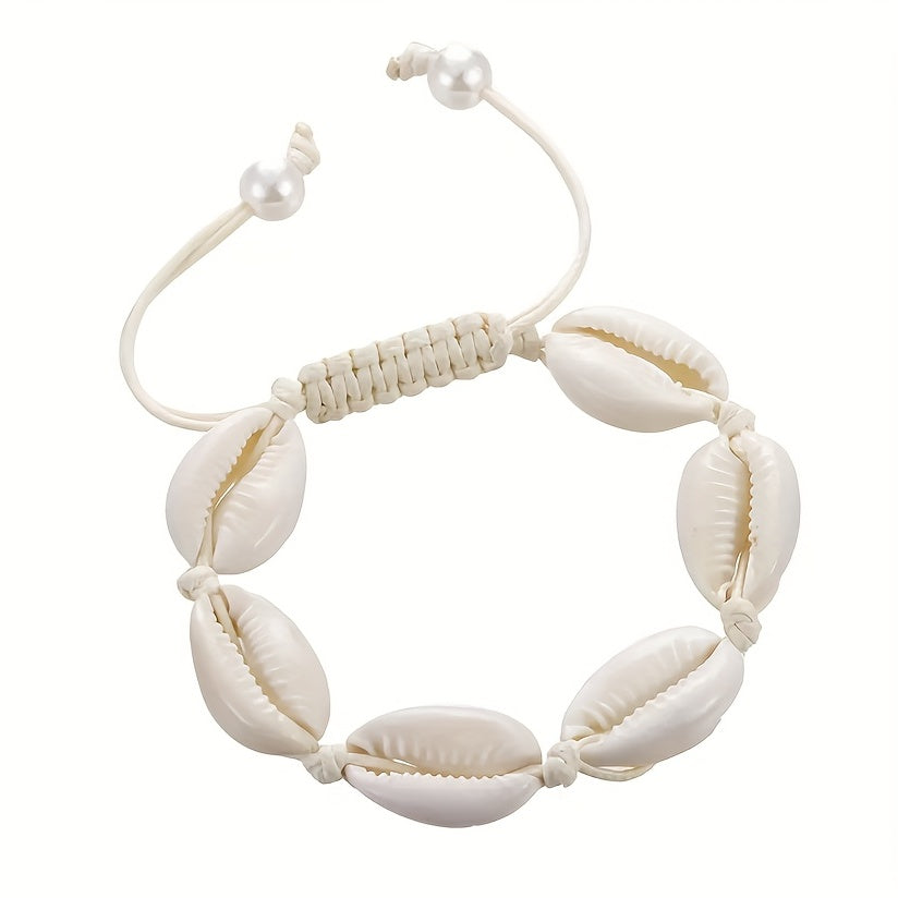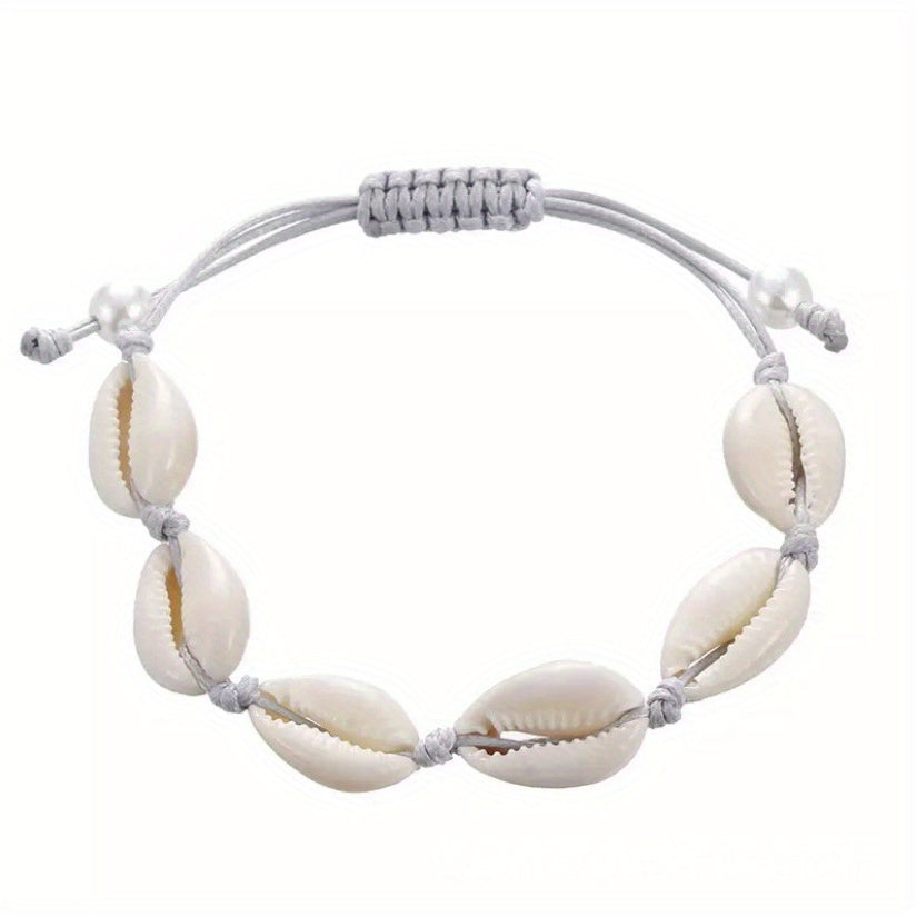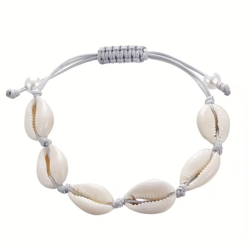 Enjoy a casual vocation seaside style with this fashionable beach shell bracelet. The rope knotted design and golden shell add a touch of elegance to your look.