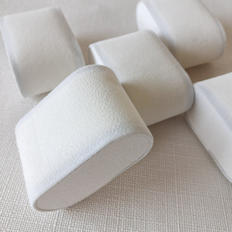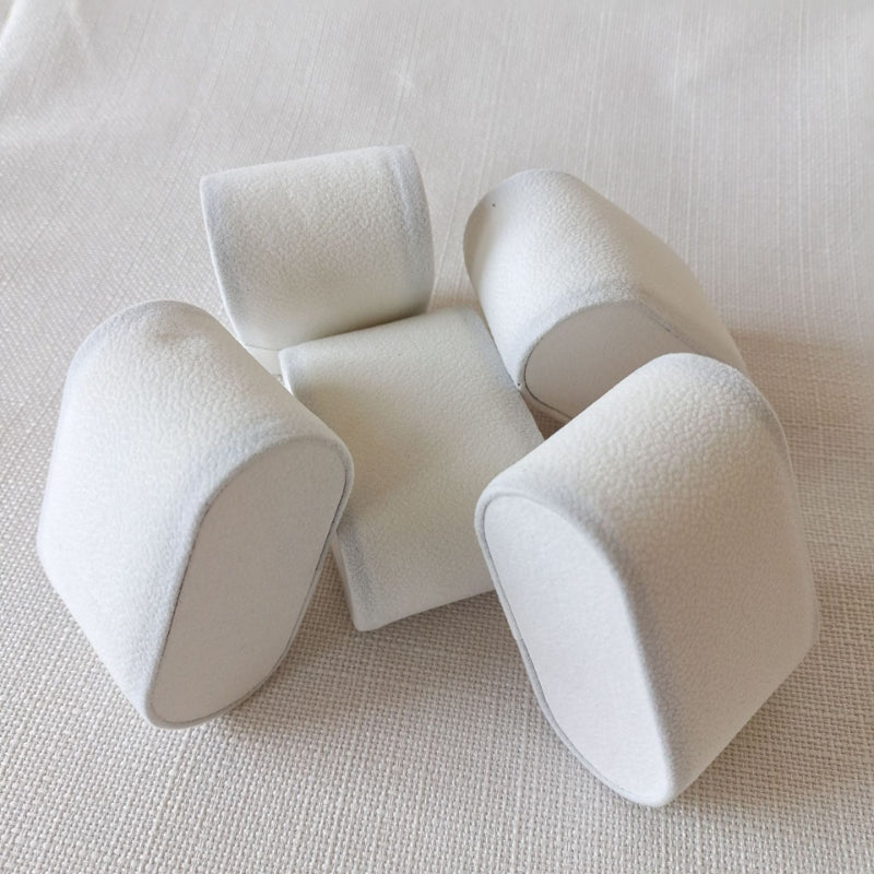 This small rectangular pillow is made of high elastic sponge covered with beige pearl velvet. Perfect for displaying watches and jewelry.