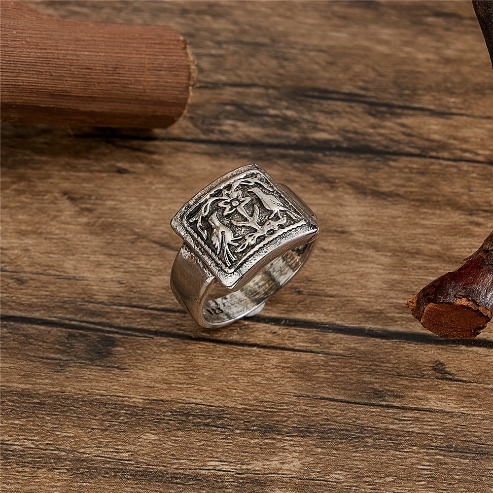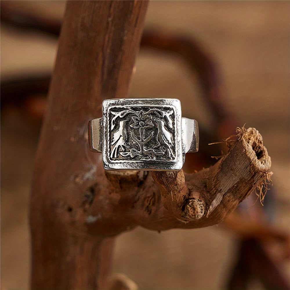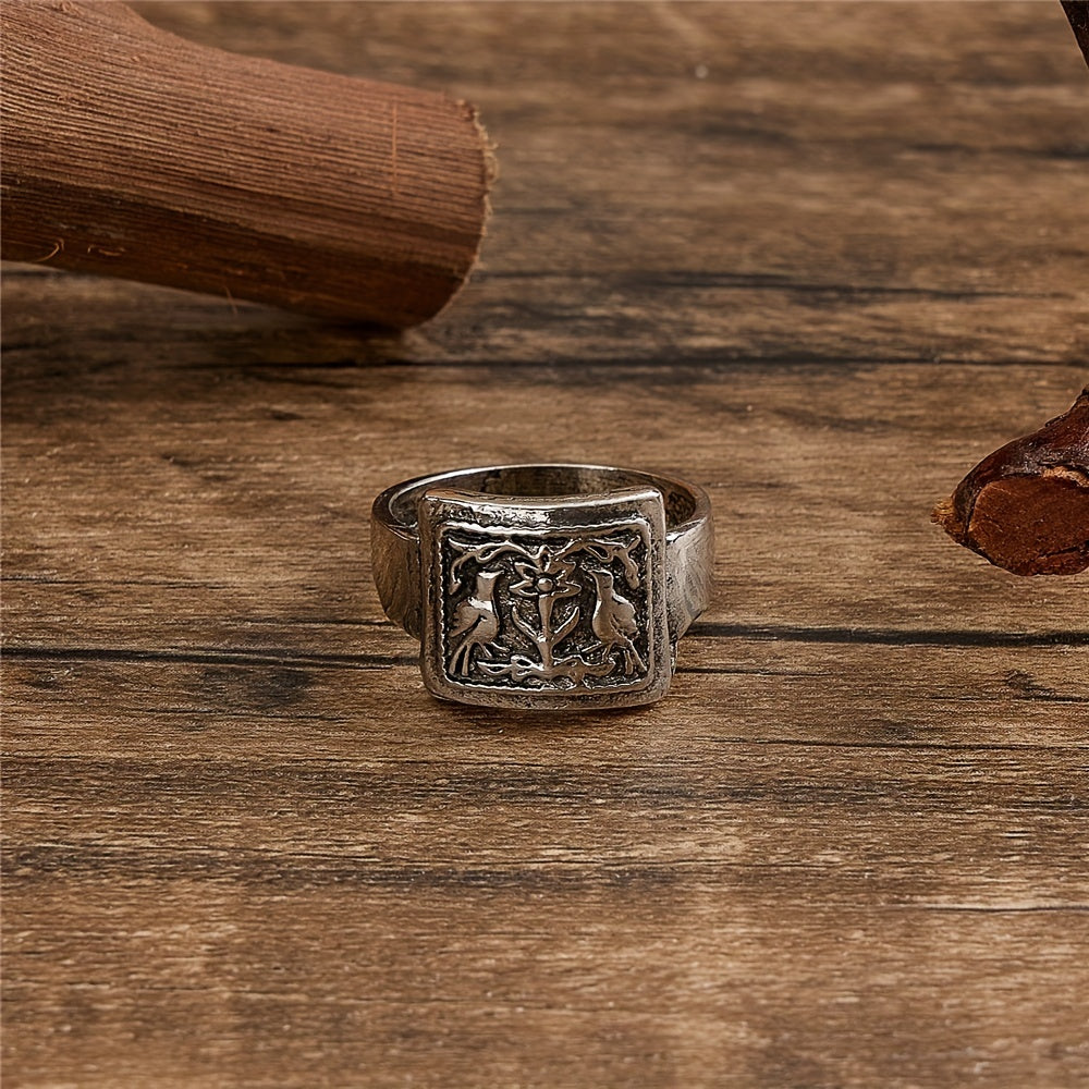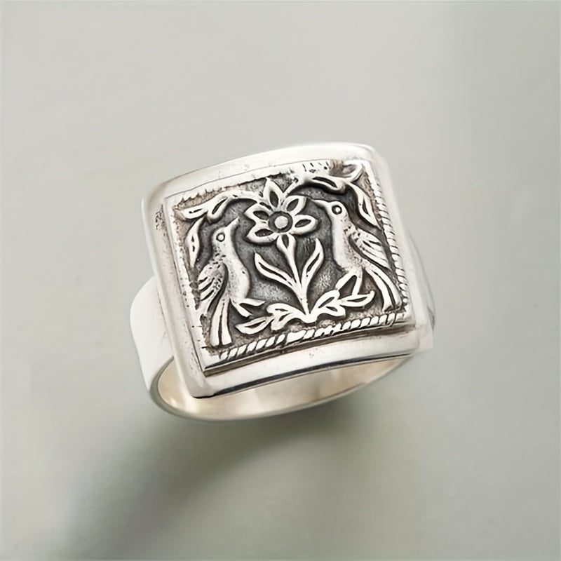 Embrace a vintage vibe with this unique men's ring featuring a bohemian bird and flower pattern design.