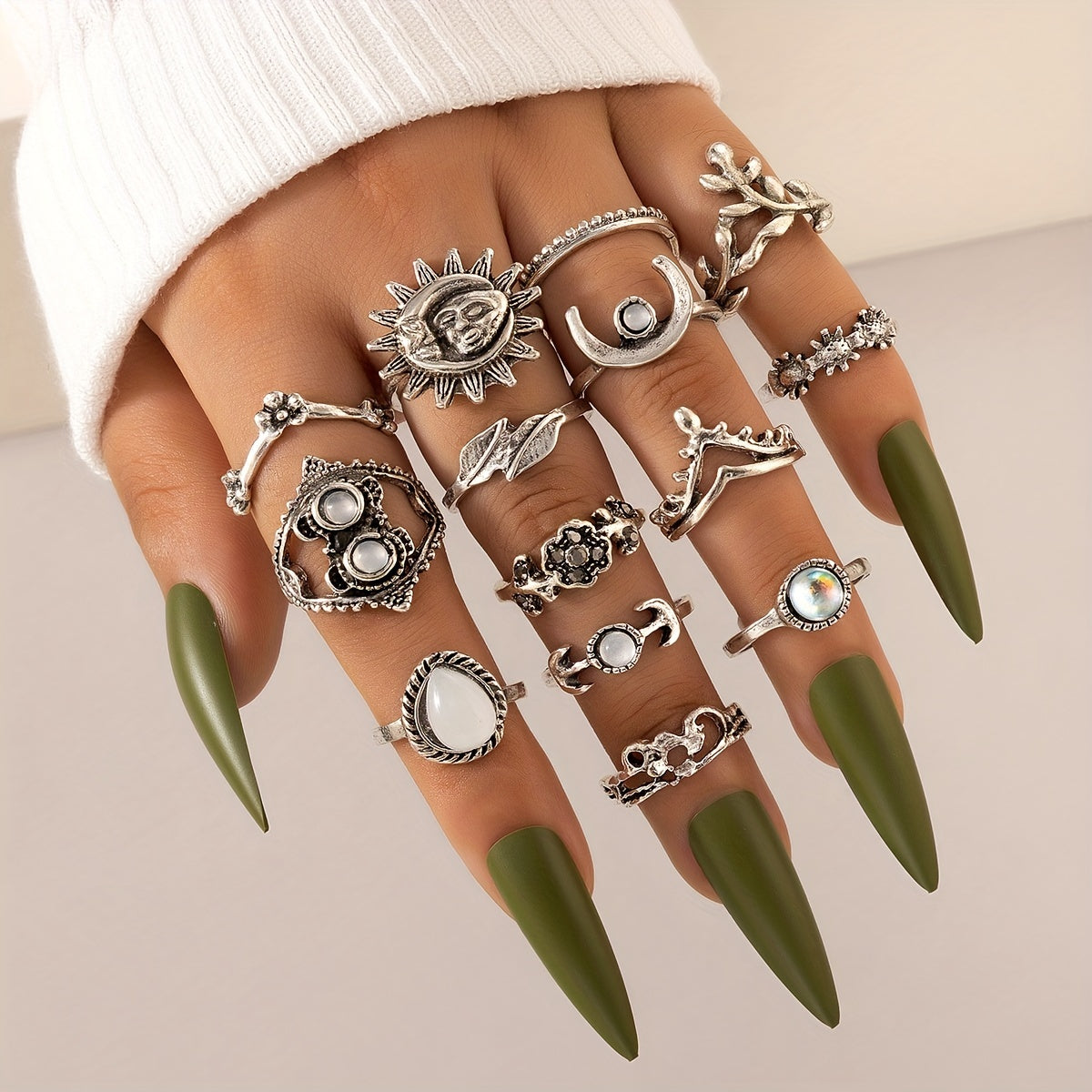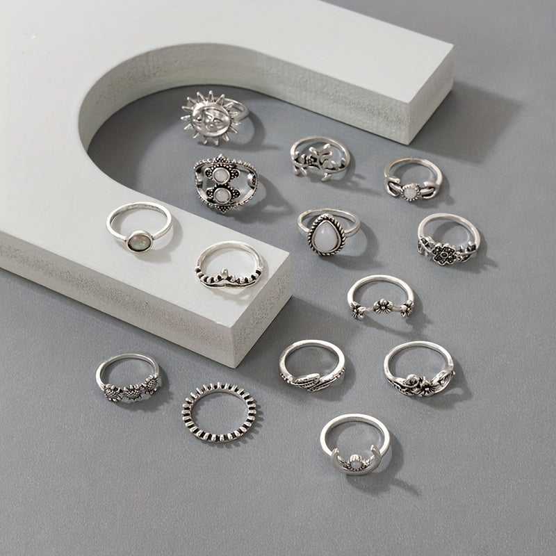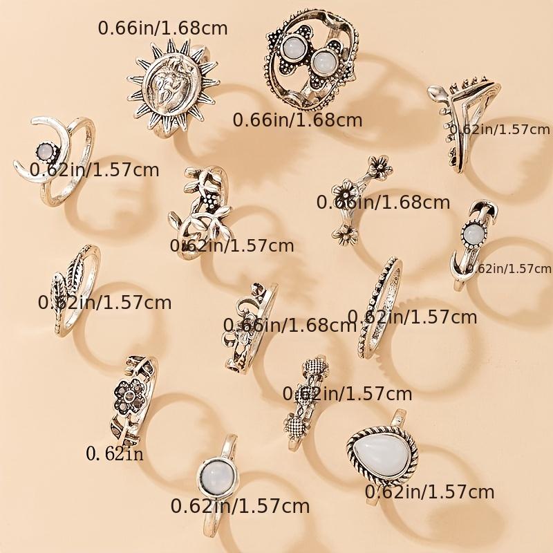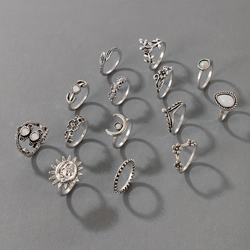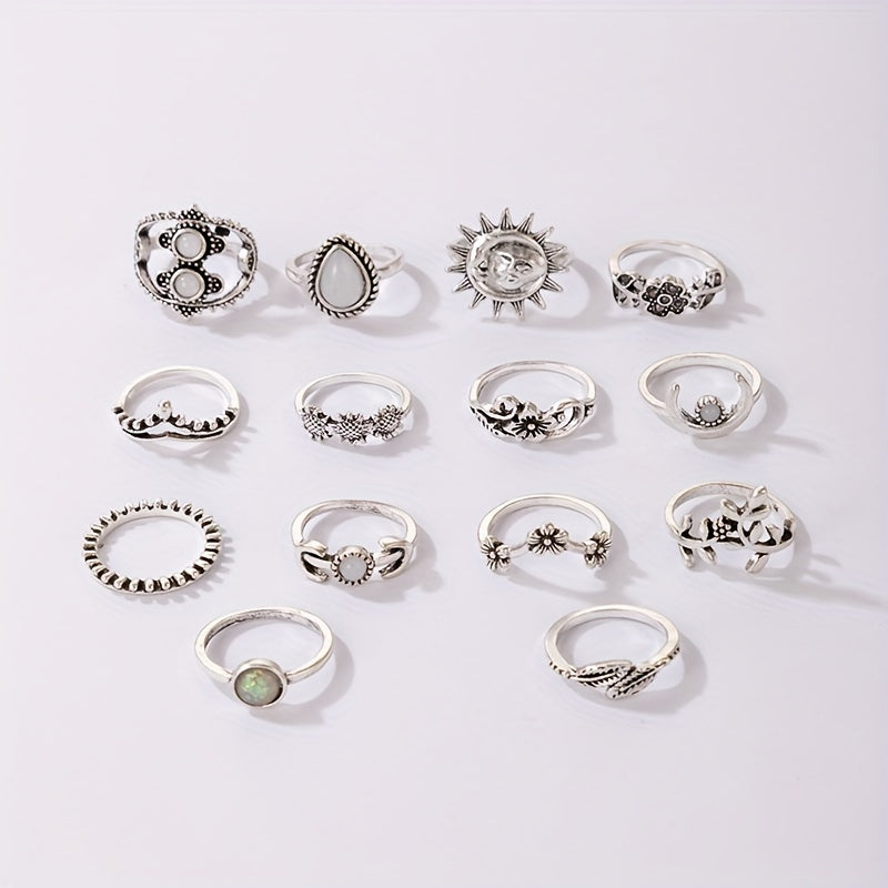 This vintage joint ring set includes 14pcs of assorted rings in a boho style design. Perfect for adding a touch of nature-inspired charm to your outfit.