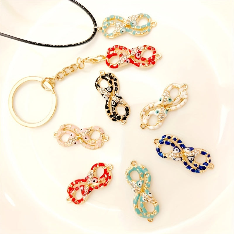 Elevate your style with this bohemian ethnic keychain bracelet featuring colorful rhinestone eye patterns and an infinity symbol. Made of high-quality alloy, this accessory adds a touch of uniqueness to your look.