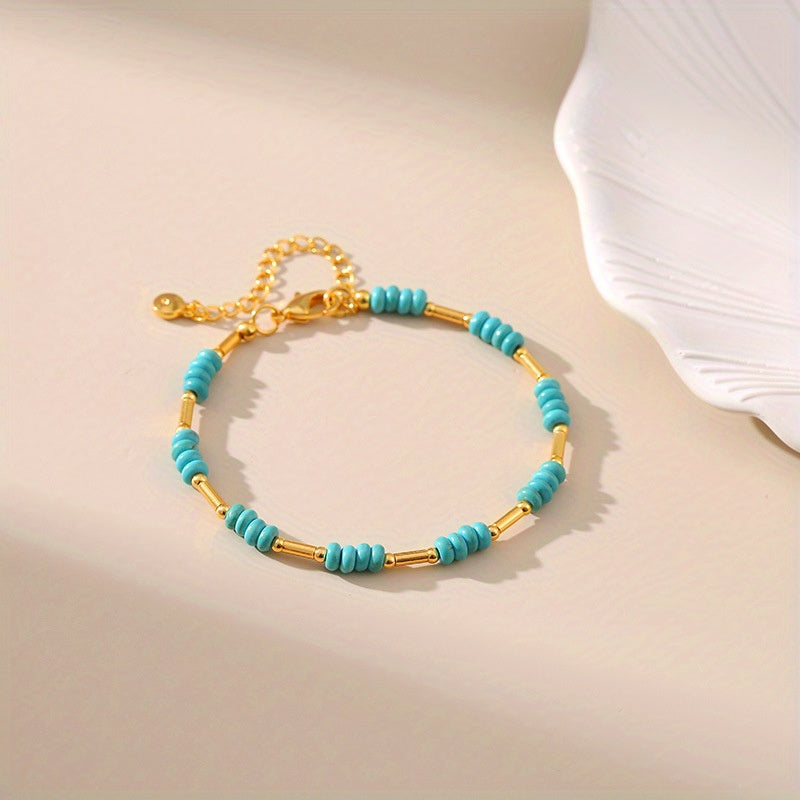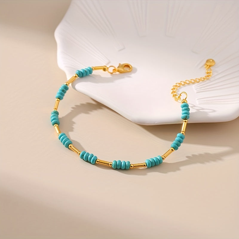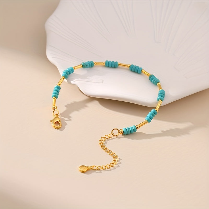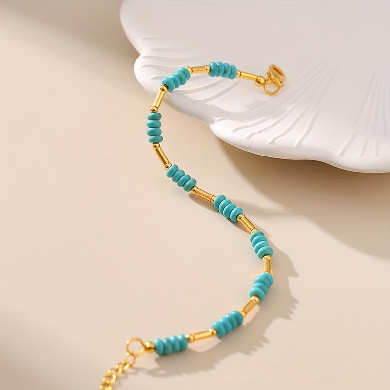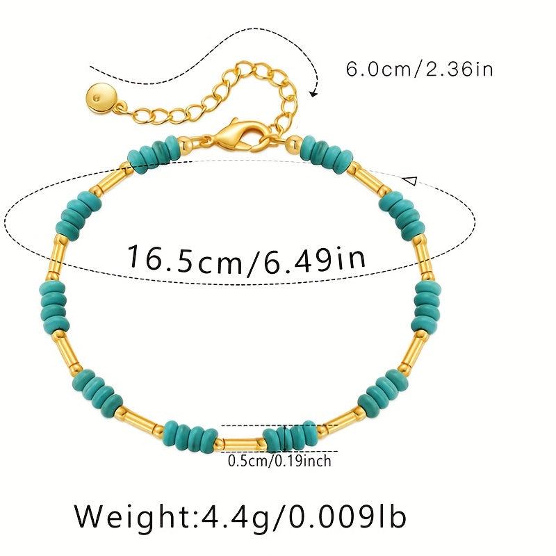 Elevate your style with this bohemian turquoise bead bracelet. The perfect summer accessory that can be worn casually or on holiday. Makes a great gift for a loved one.