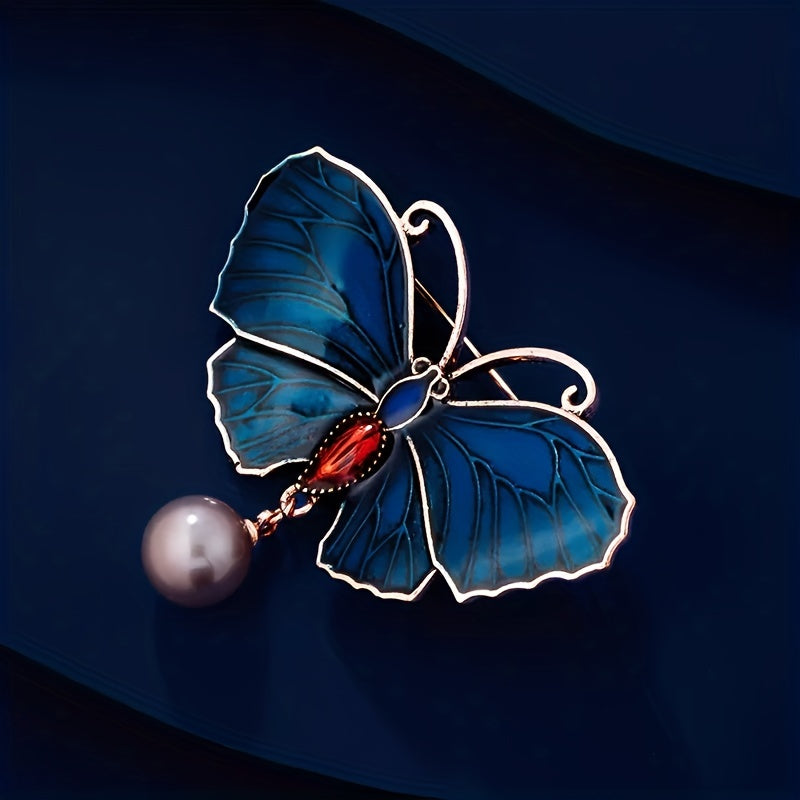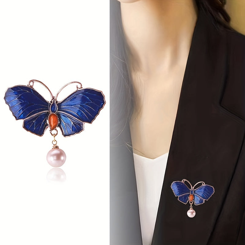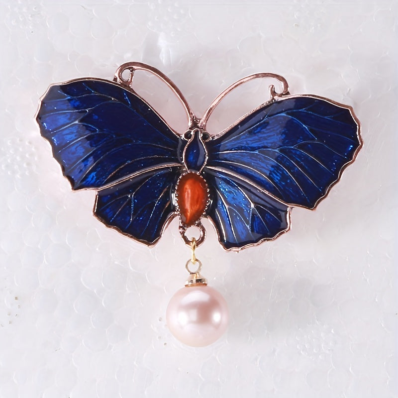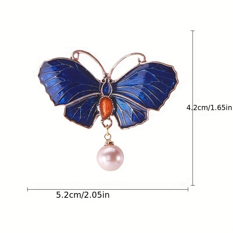 Add a touch of elegance to your outfit with this beautiful butterfly brooch featuring a faux pearl pendant. Perfect for enhancing your clothing accessories.