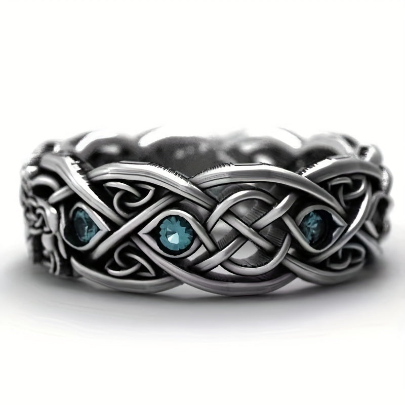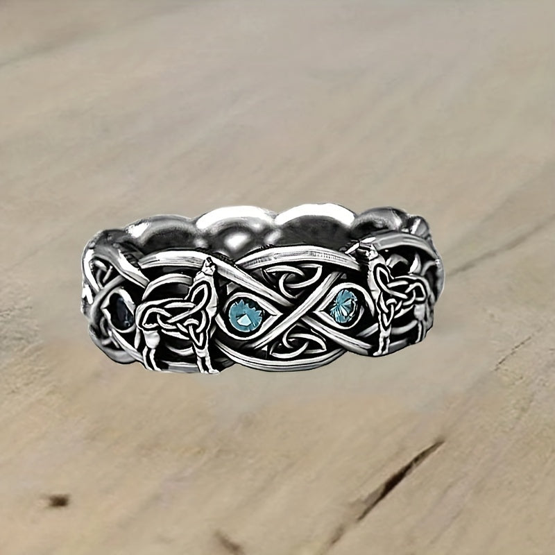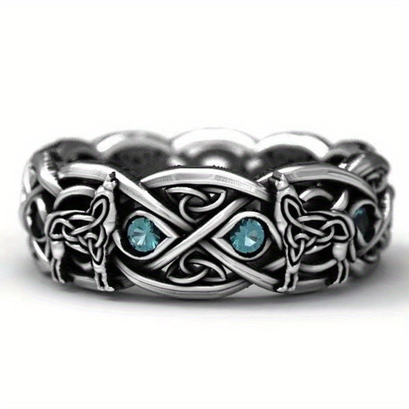 Add a touch of ancient Celtic style to your look with this stunning wolf totem ring, featuring a topaz gemstone and intricate design details.
