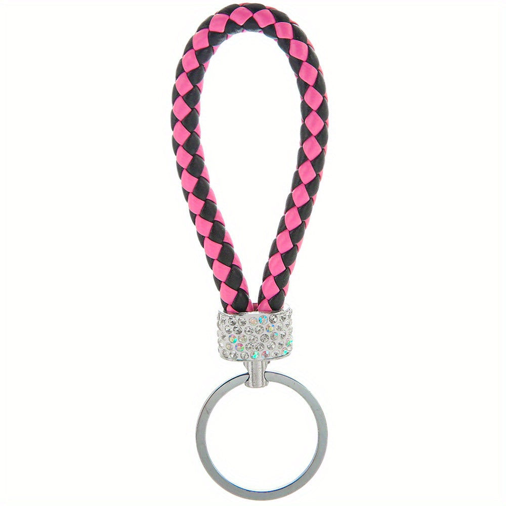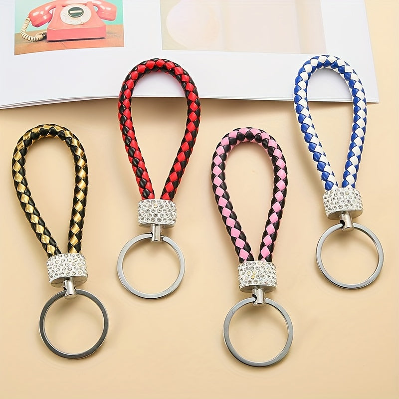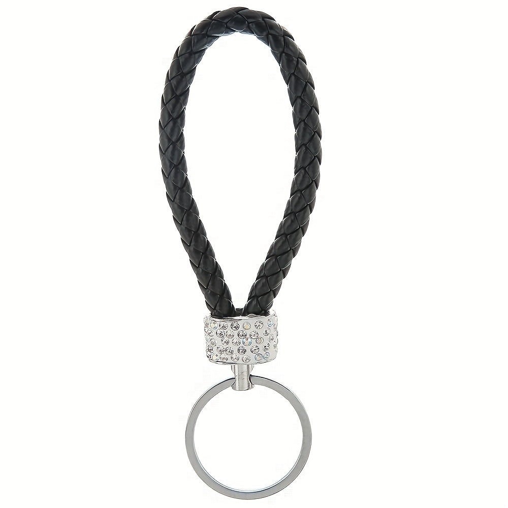 This stylish key chain features ceramic inlay and artificial diamond accents, perfect for attaching to bags or keys.
