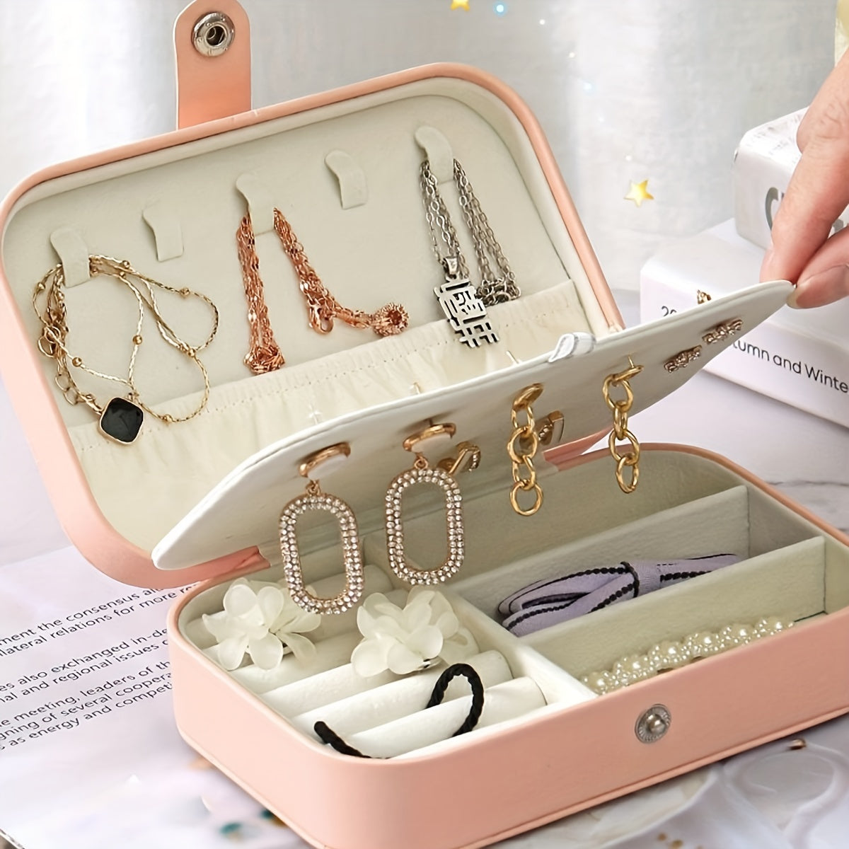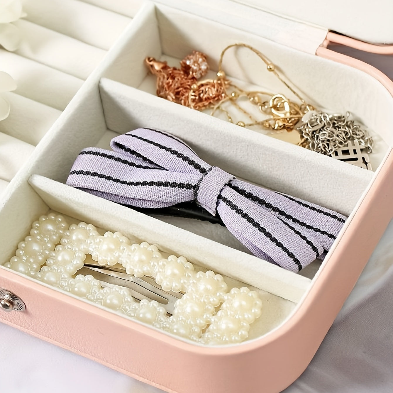 This elegant storage box is perfect for organizing and keeping your jewelry accessories safe. It is ideal for storing earrings, necklaces, bracelets, rings, barrettes, hair ornaments, and watches while traveling.