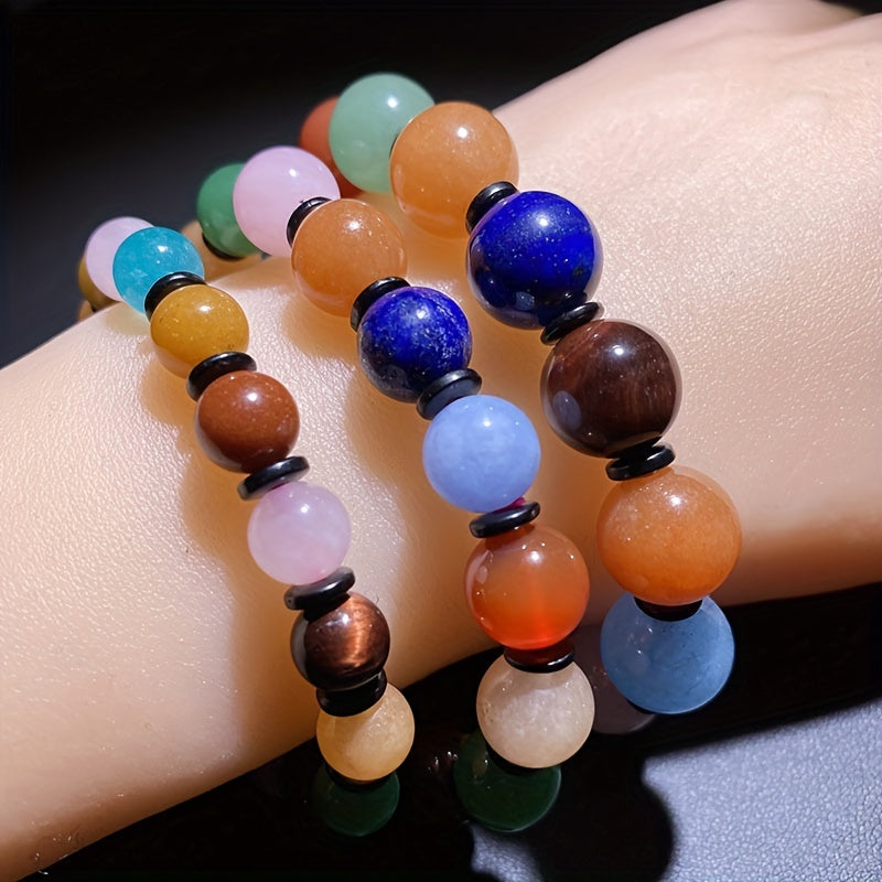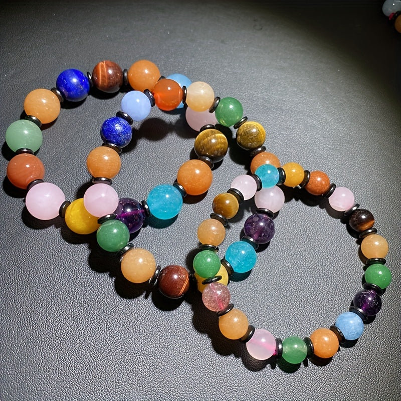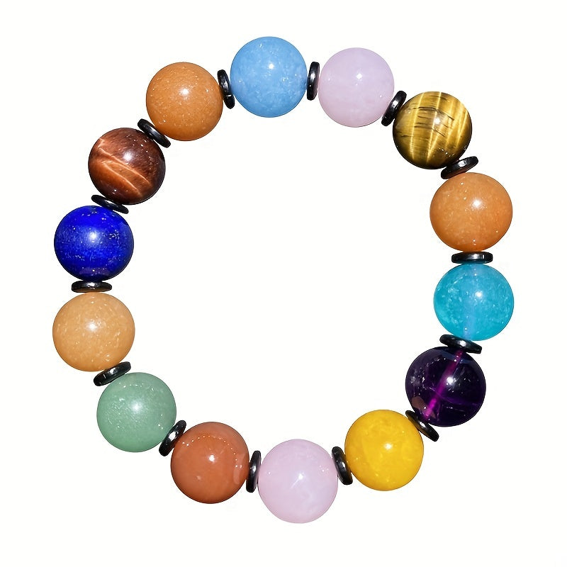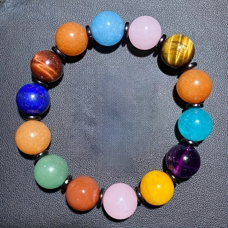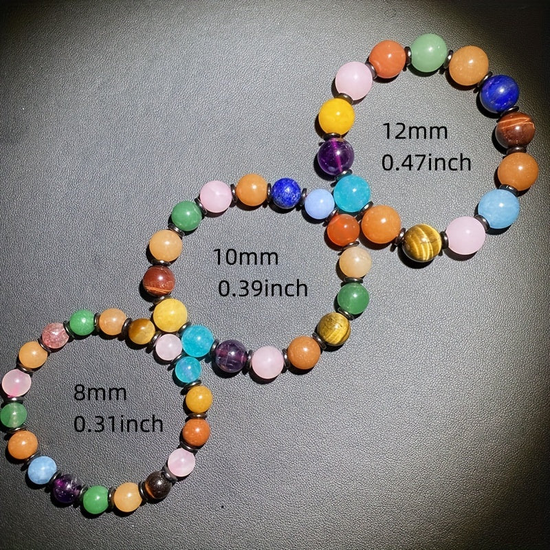This 8-12mm beaded bracelet features colorful natural stones with chakras healing crystals. Perfect gift for holidays, birthdays, graduations, parties, women, and girls.