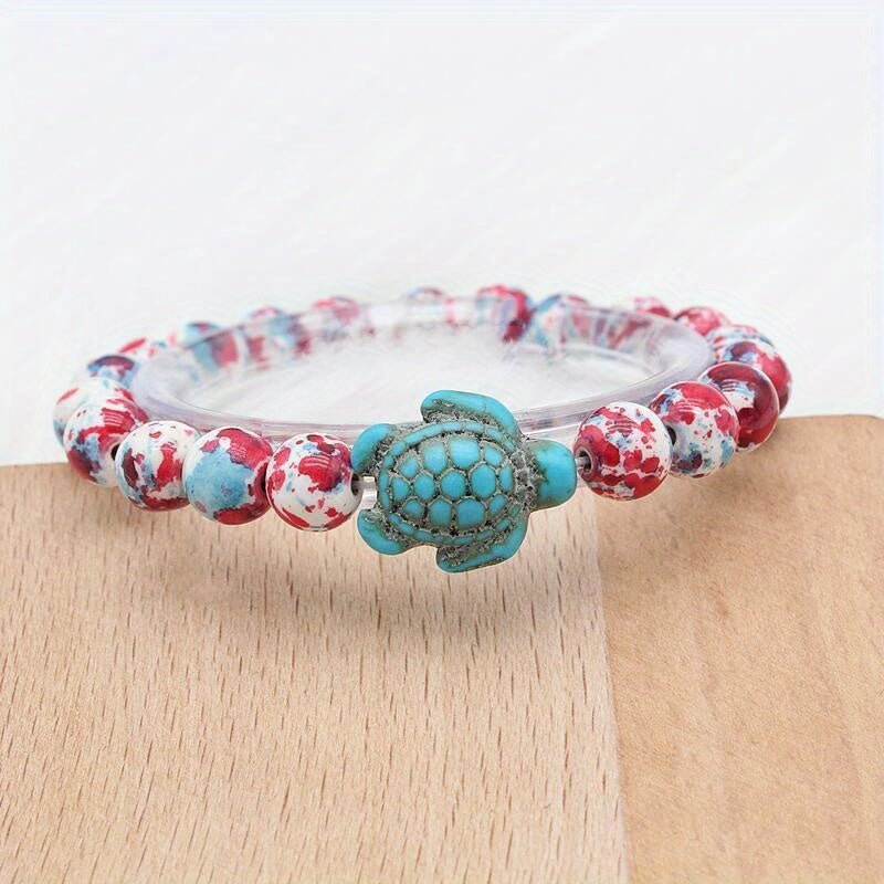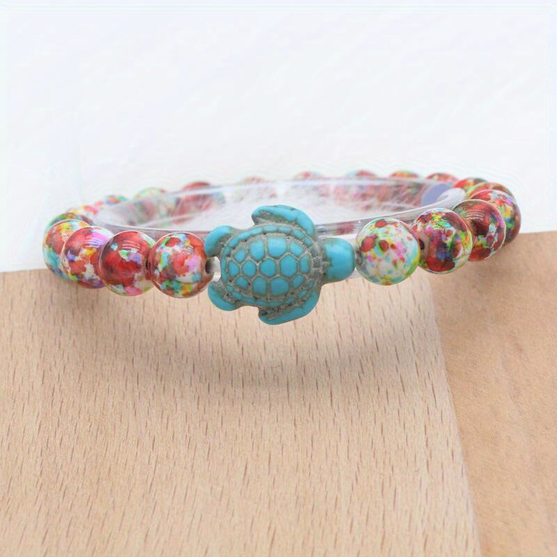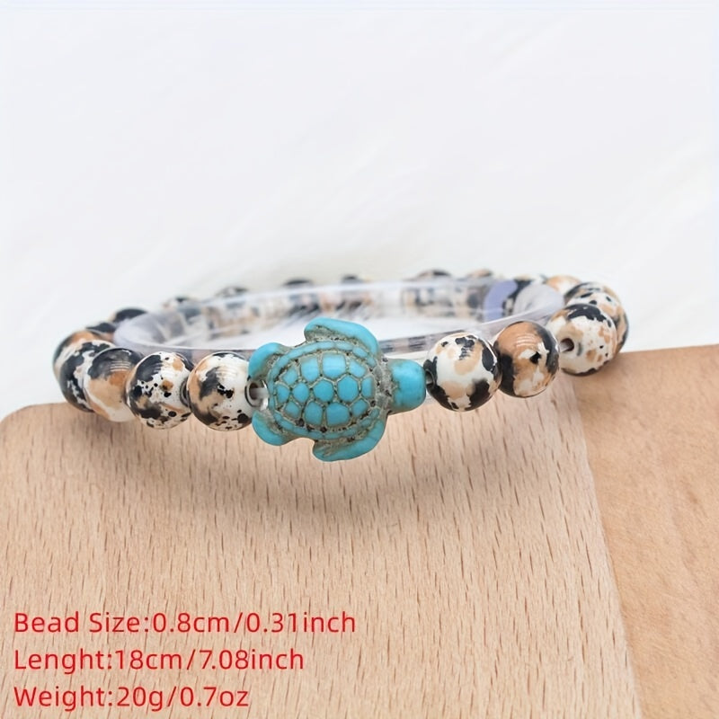 Embrace positive energy with this vibrant turtle turquoise bracelet, perfect for yoga lovers.