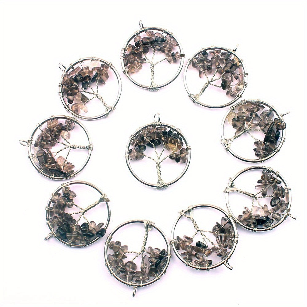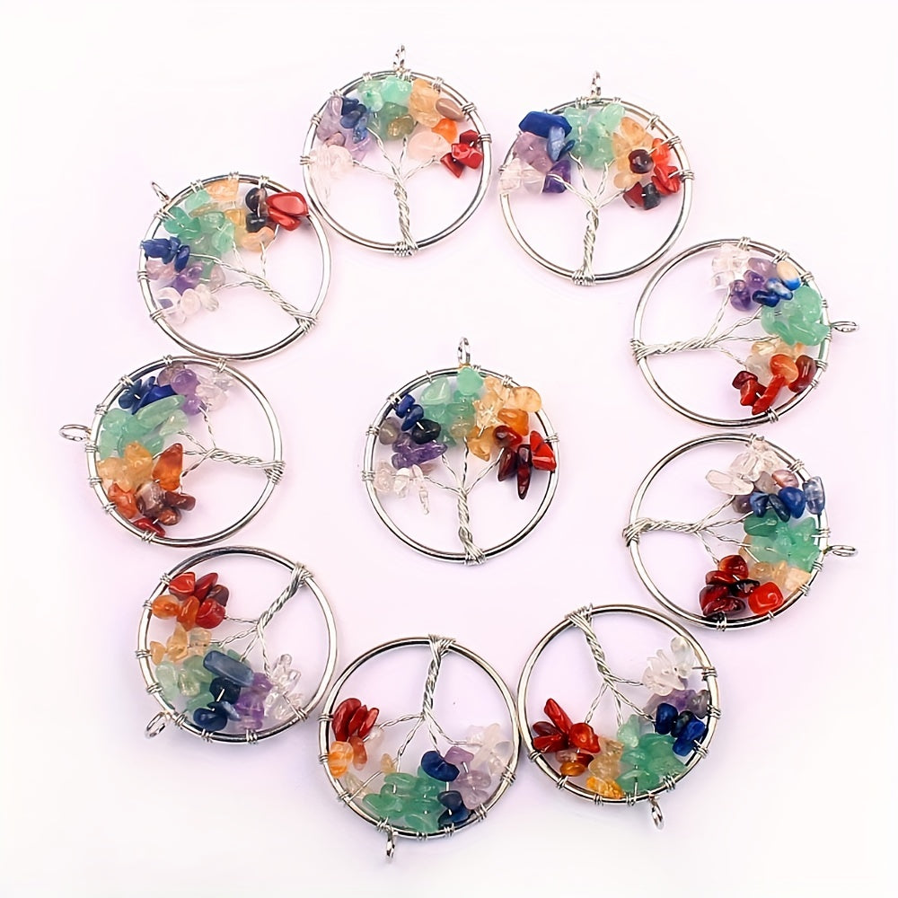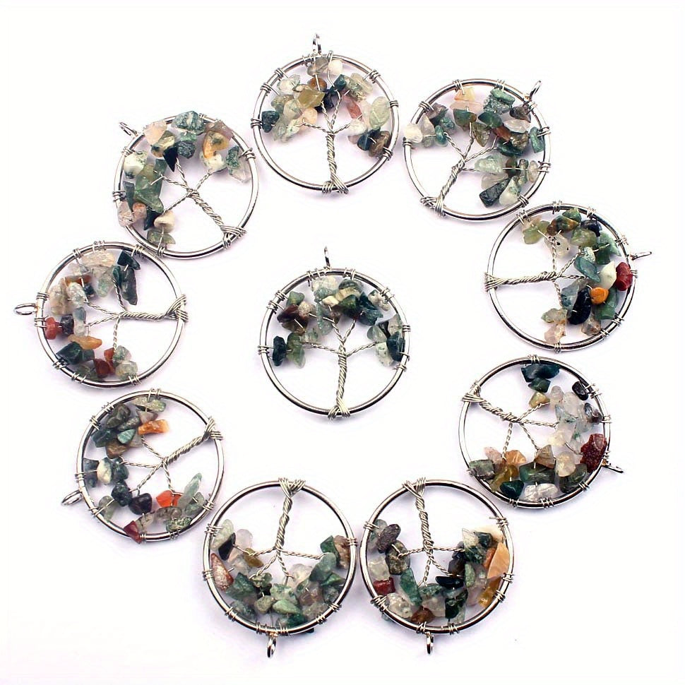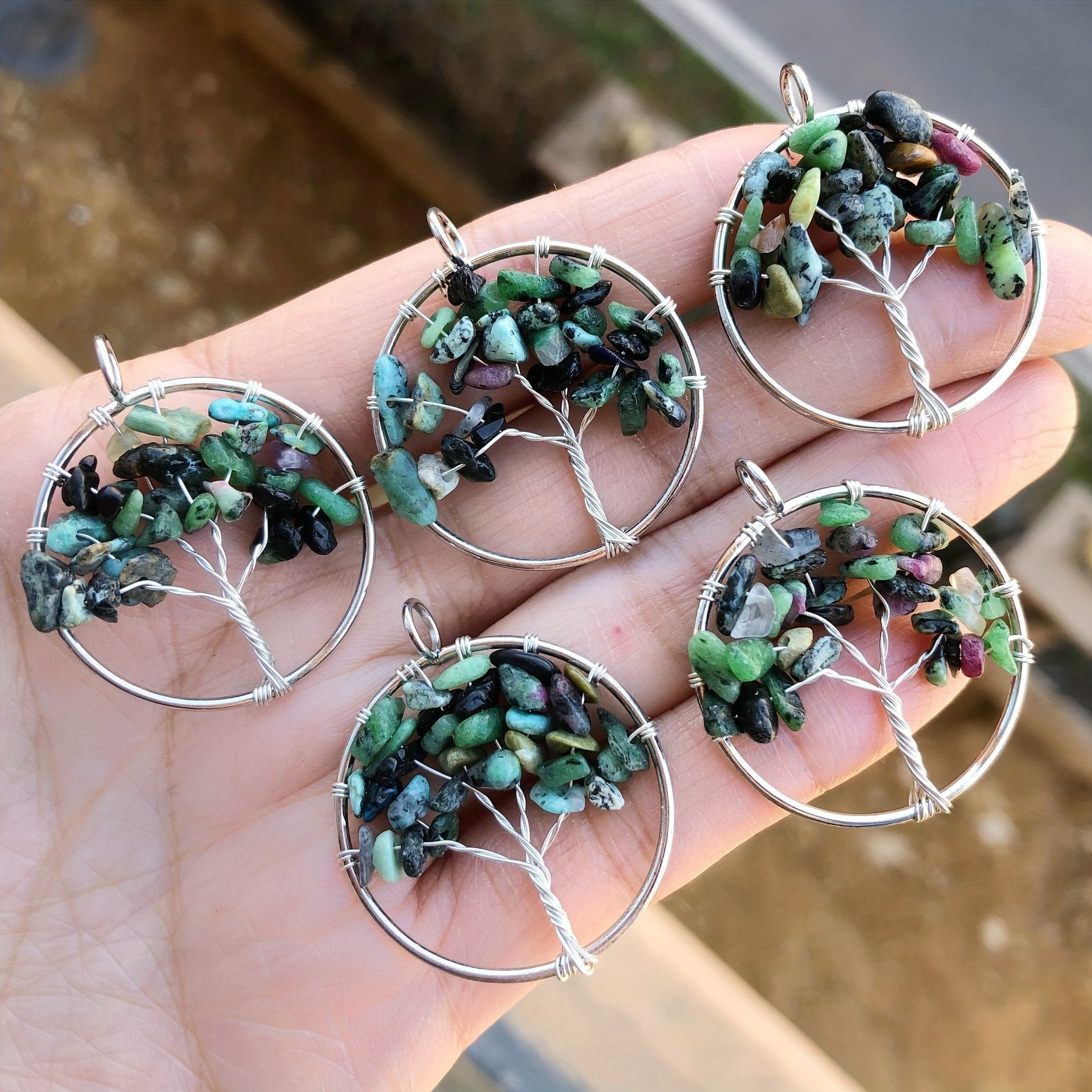 This colorful wrap iron wire life tree pendant features a natural stone, perfect for DIY jewelry making. The pendant measures 30mm in size.