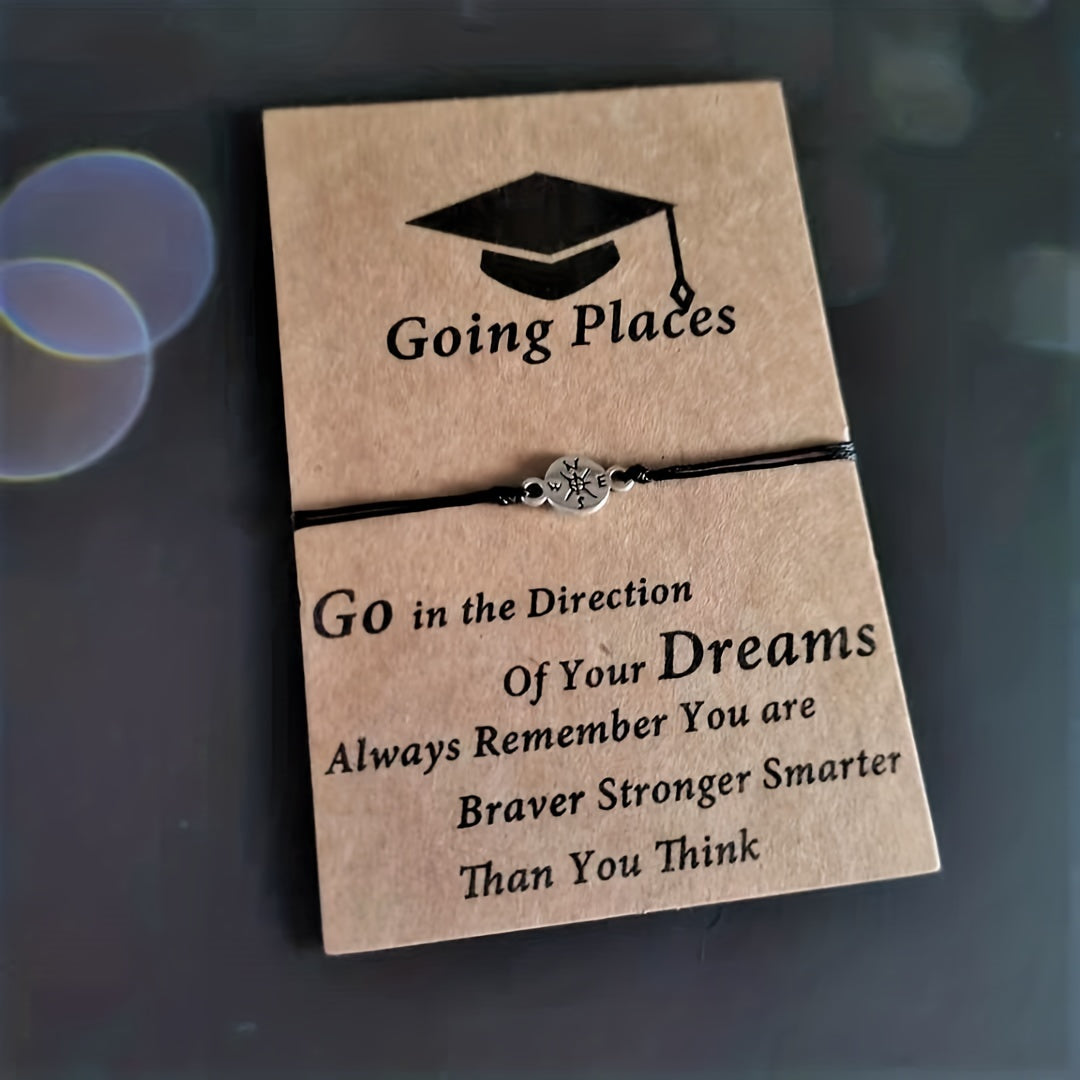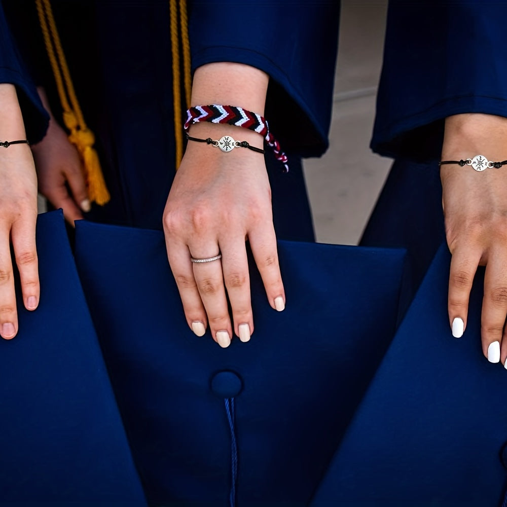 Celebrate your graduation with this stylish compass bracelet, perfect for guys and friends. Show your school spirit and journey ahead with this meaningful accessory.