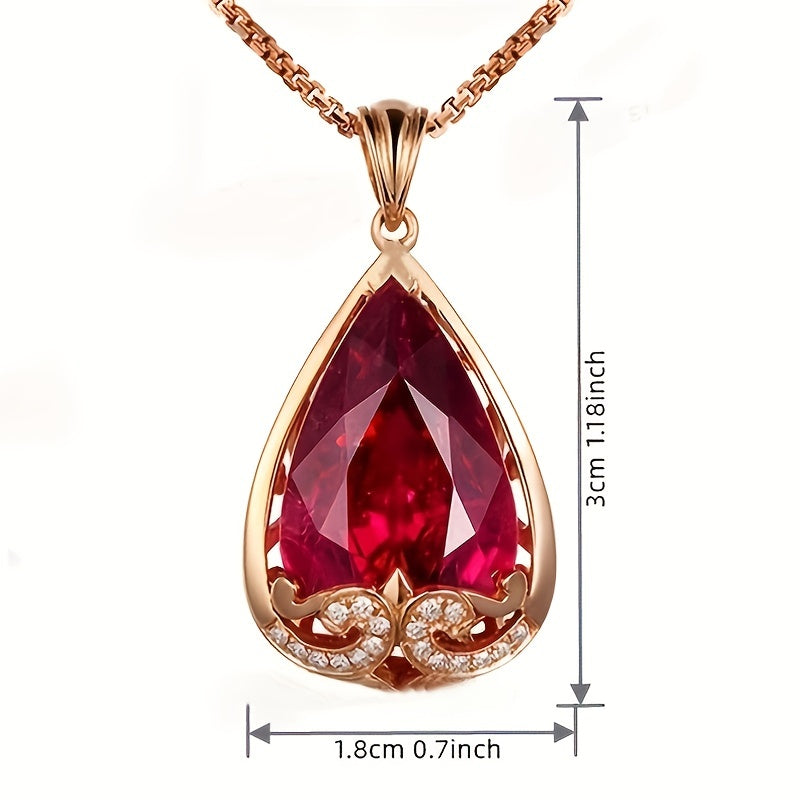 This elegant pendant features a drop-shaped copper plated rose golden pigeon blood red tourmaline, making it a treasure for women's collars.