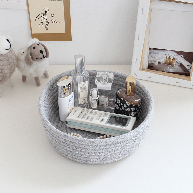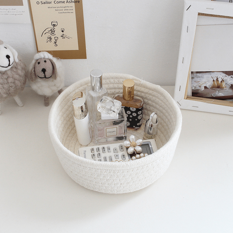 This minimalist storage basket is perfect for desktop organization, storing sundries, kids toys, and more. It is made of high-quality cotton rope, adding a touch of elegance to any room.