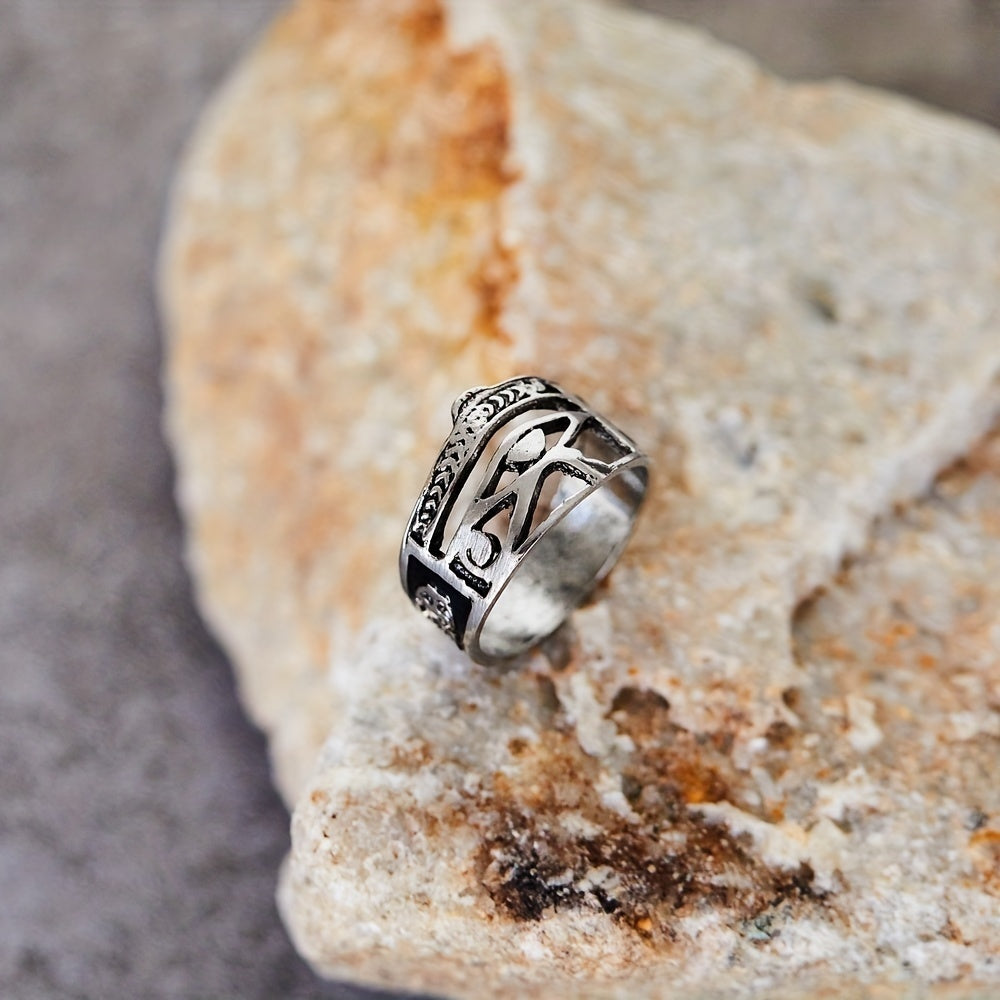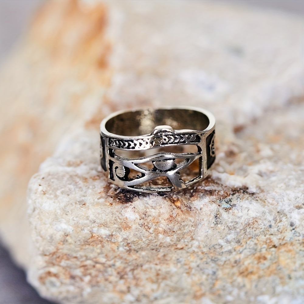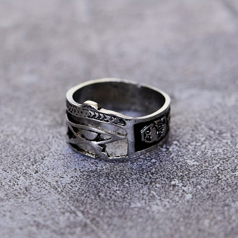 This mysterious retro eye ring features an alloy construction with a unique Masonic design, perfect for men looking to add personality to their style. Available in multiple sizes.