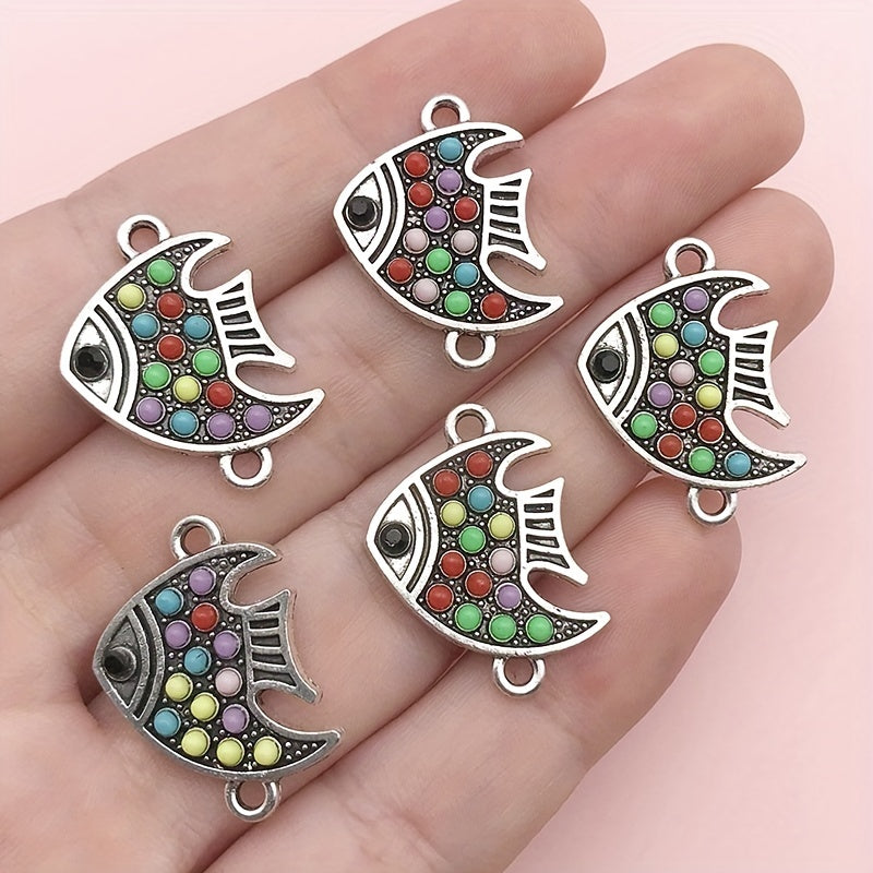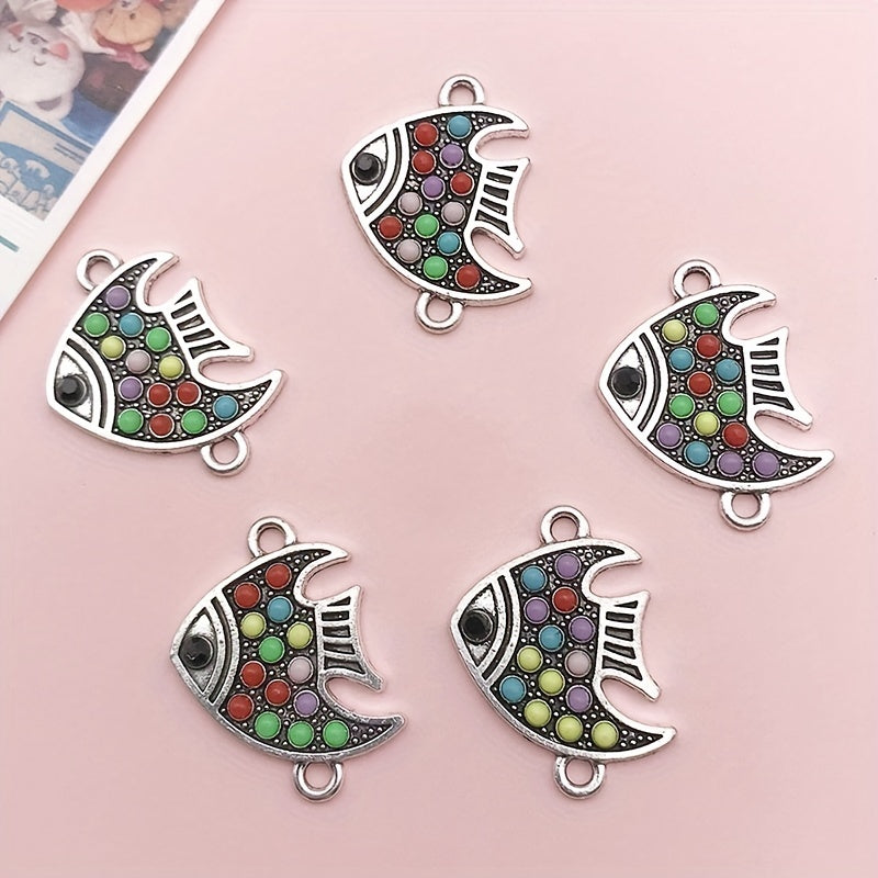 Add a touch of sparkle to your DIY jewelry with these colorful crystal fish charms connectors. Perfect for necklaces, bracelets, and earrings.