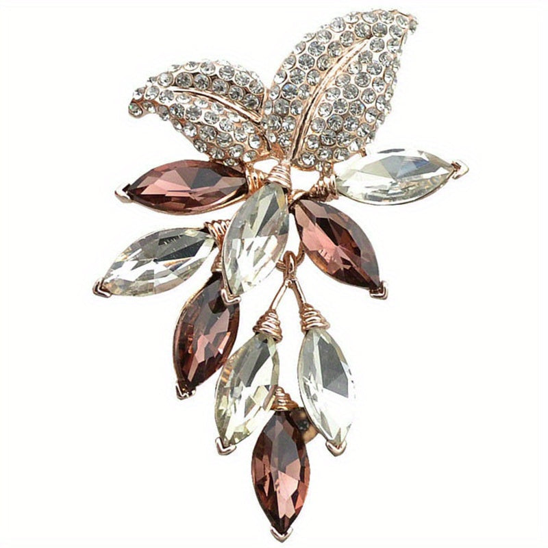 Crystal Grape Rhinestone Leaf Brooch Women&