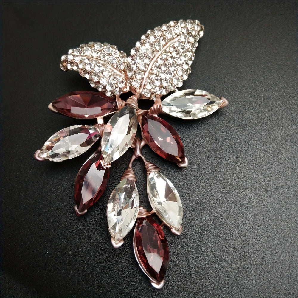 This exquisite brooch features a grape shape design with dazzling rhinestones and delicate leaf accents. Perfect for adding a touch of elegance to your outfit.