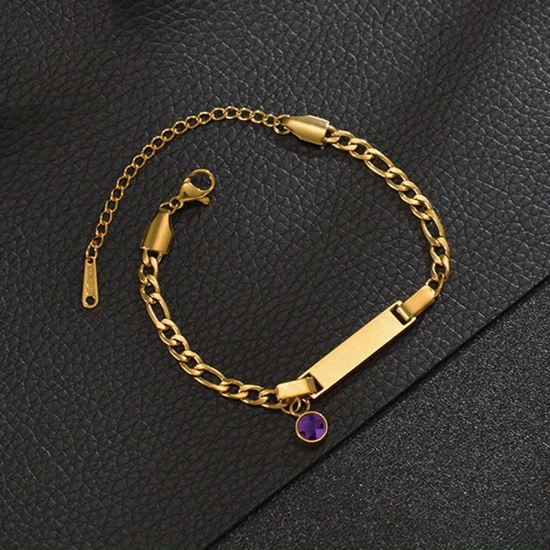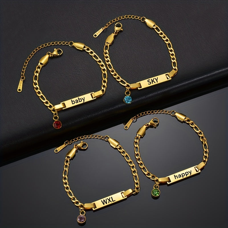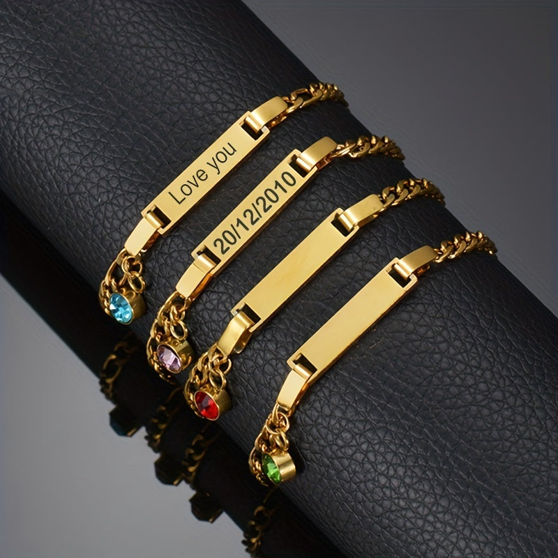 Personalize this special bracelet with twelve birthstones and a custom message. Made of durable titanium steel, ideal for birthdays and anniversaries.
