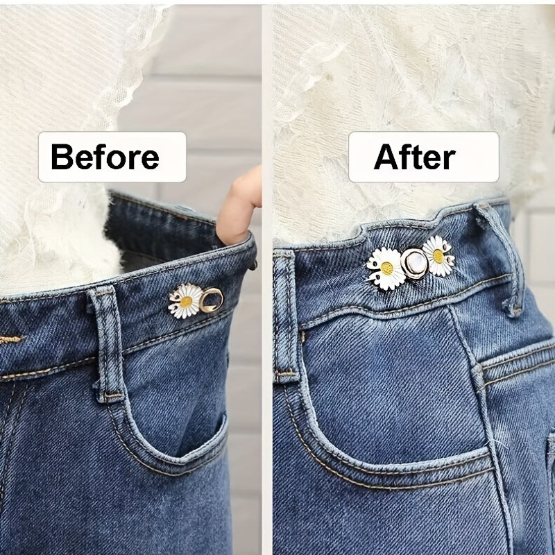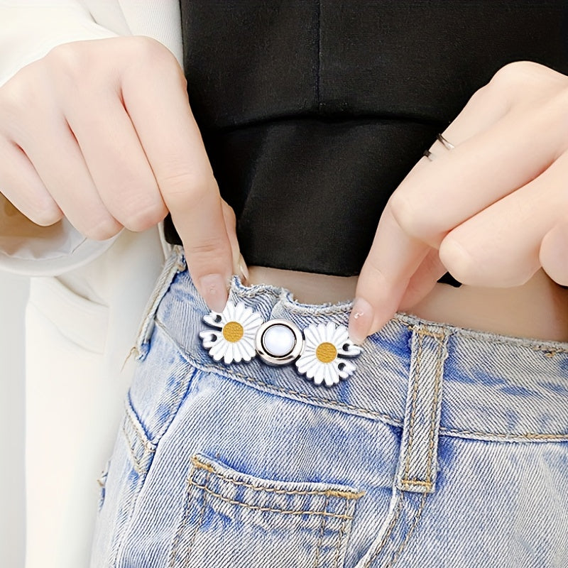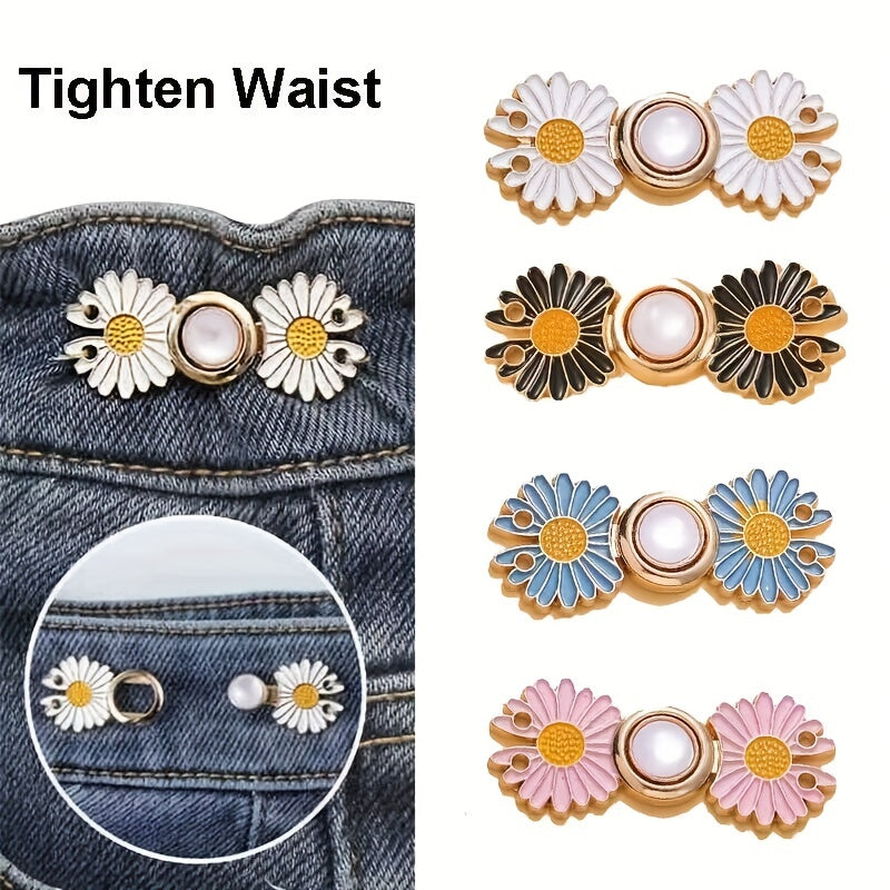 This Daisy adjustable waist tightener buckle clip is perfect for jeans, skirts and pants. It can also be used as a collar button or brooch pin in sewing projects.