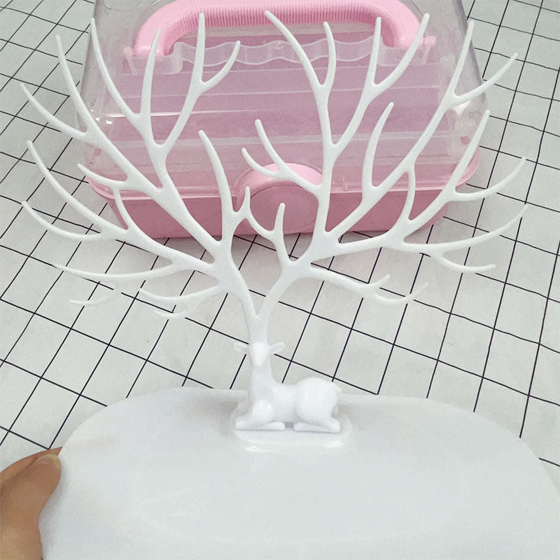 This deer tree jewelry display stand is perfect for showcasing your favorite jewelry pieces. It is made of high-quality materials and has a unique design that adds a touch of elegance to any room.
