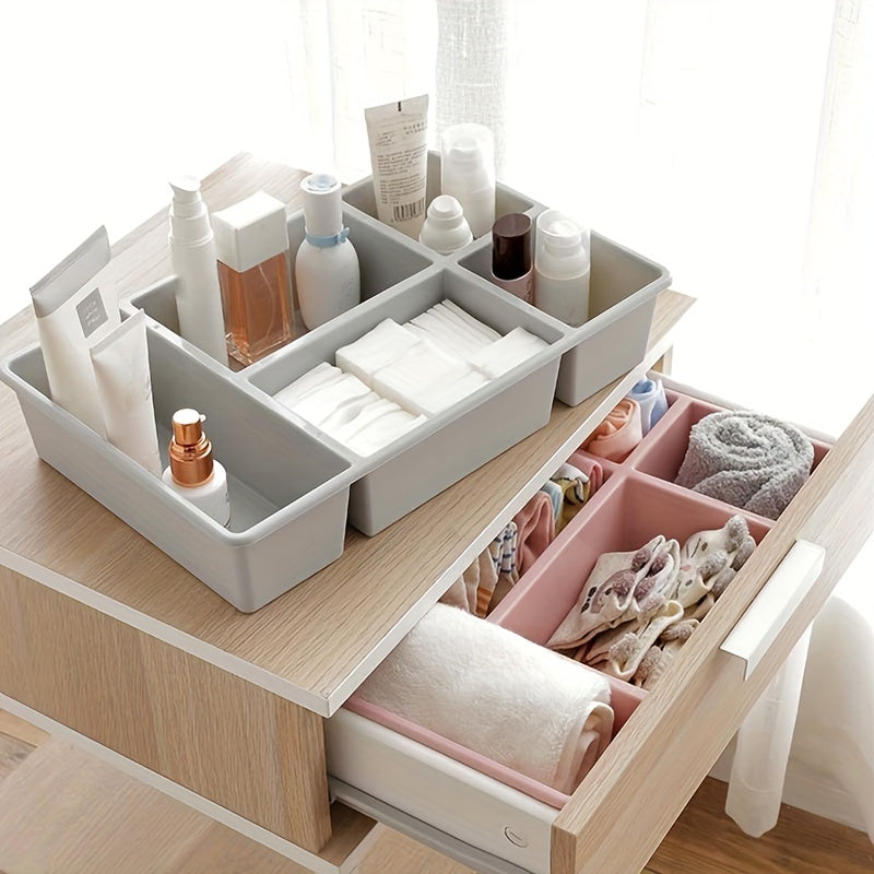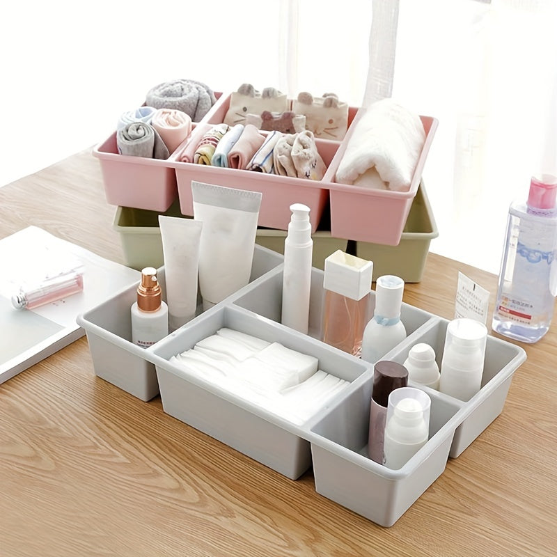 Keep your makeup brushes and cosmetics organized with this 5-compartment storage box. Perfect for desktop use.