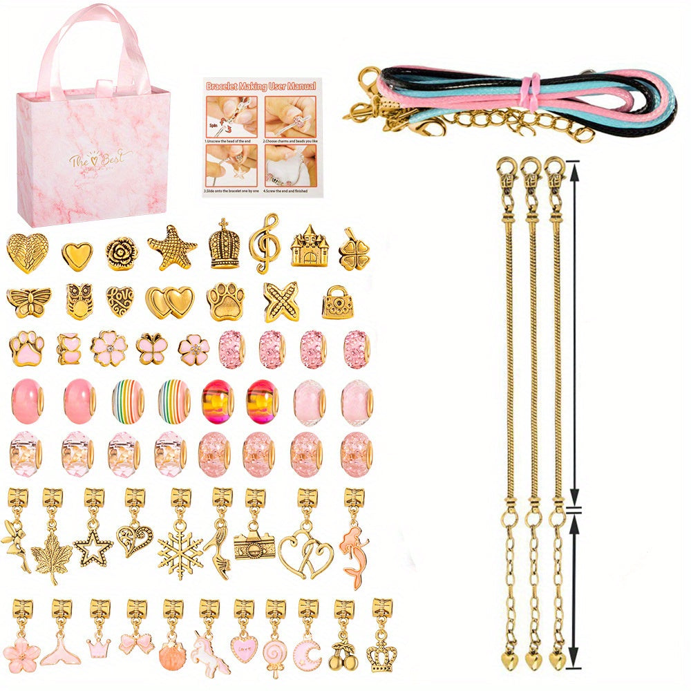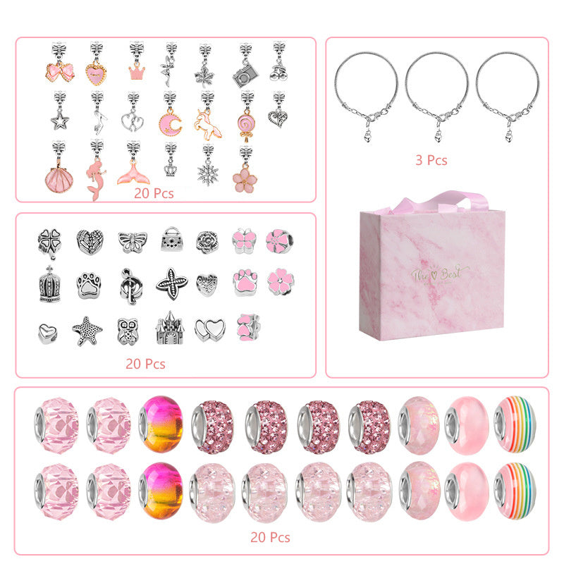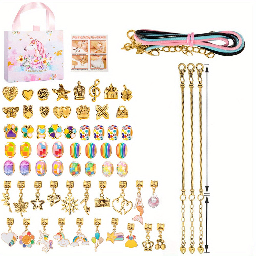 This creative set includes spacer beads and pendants for making bracelets and necklaces. Perfect for children's jewelry making projects.