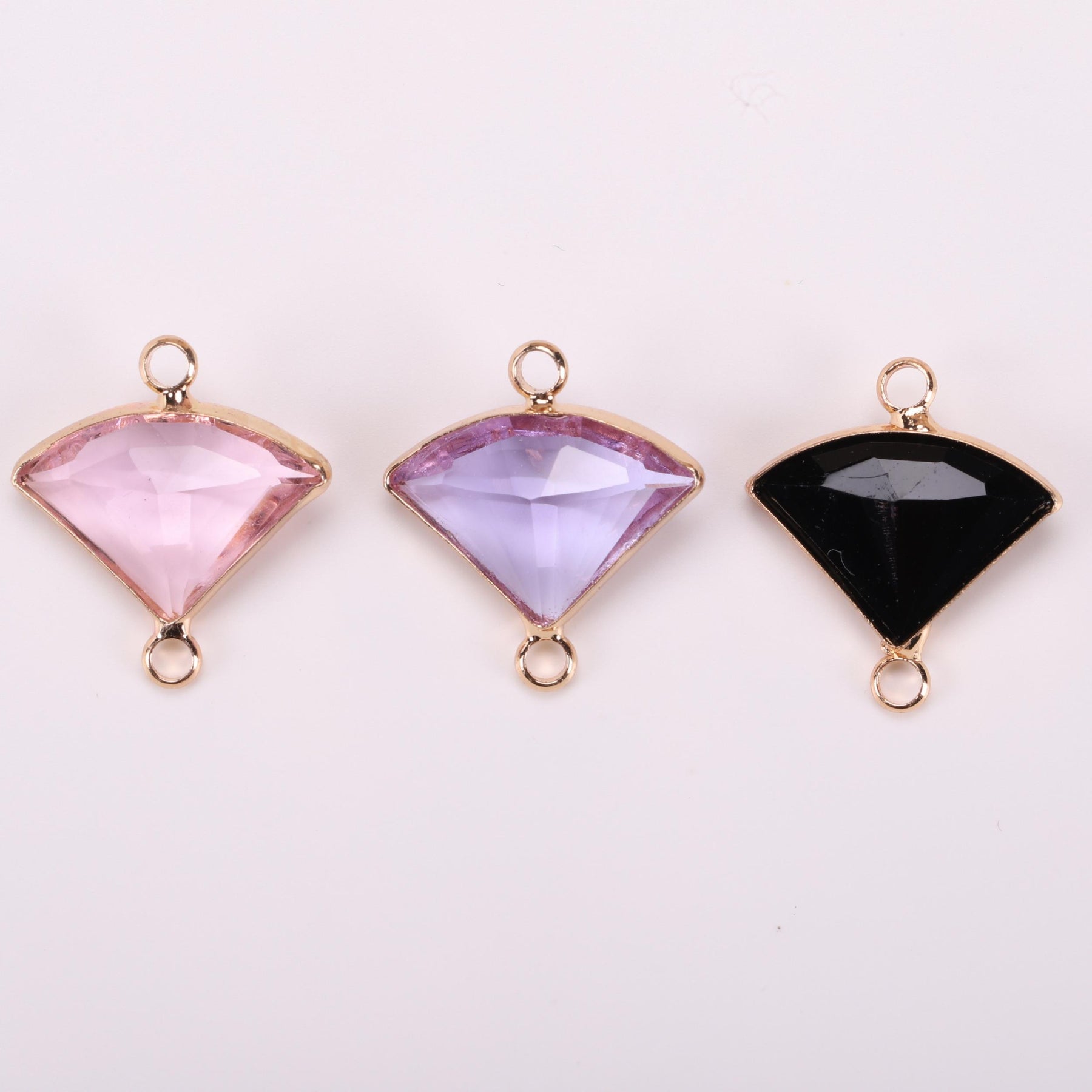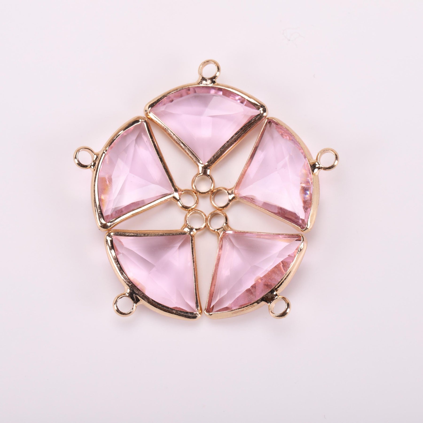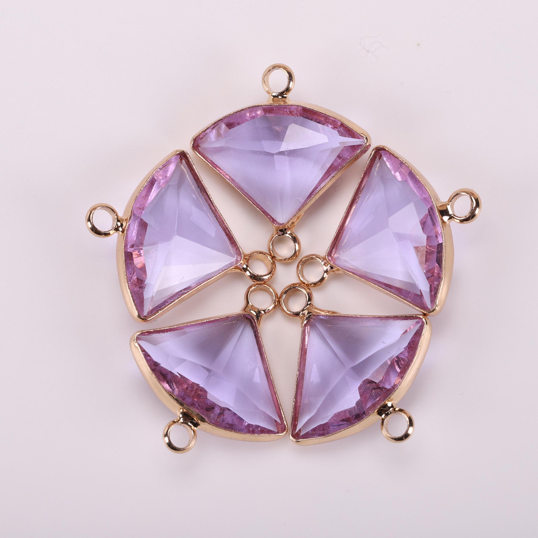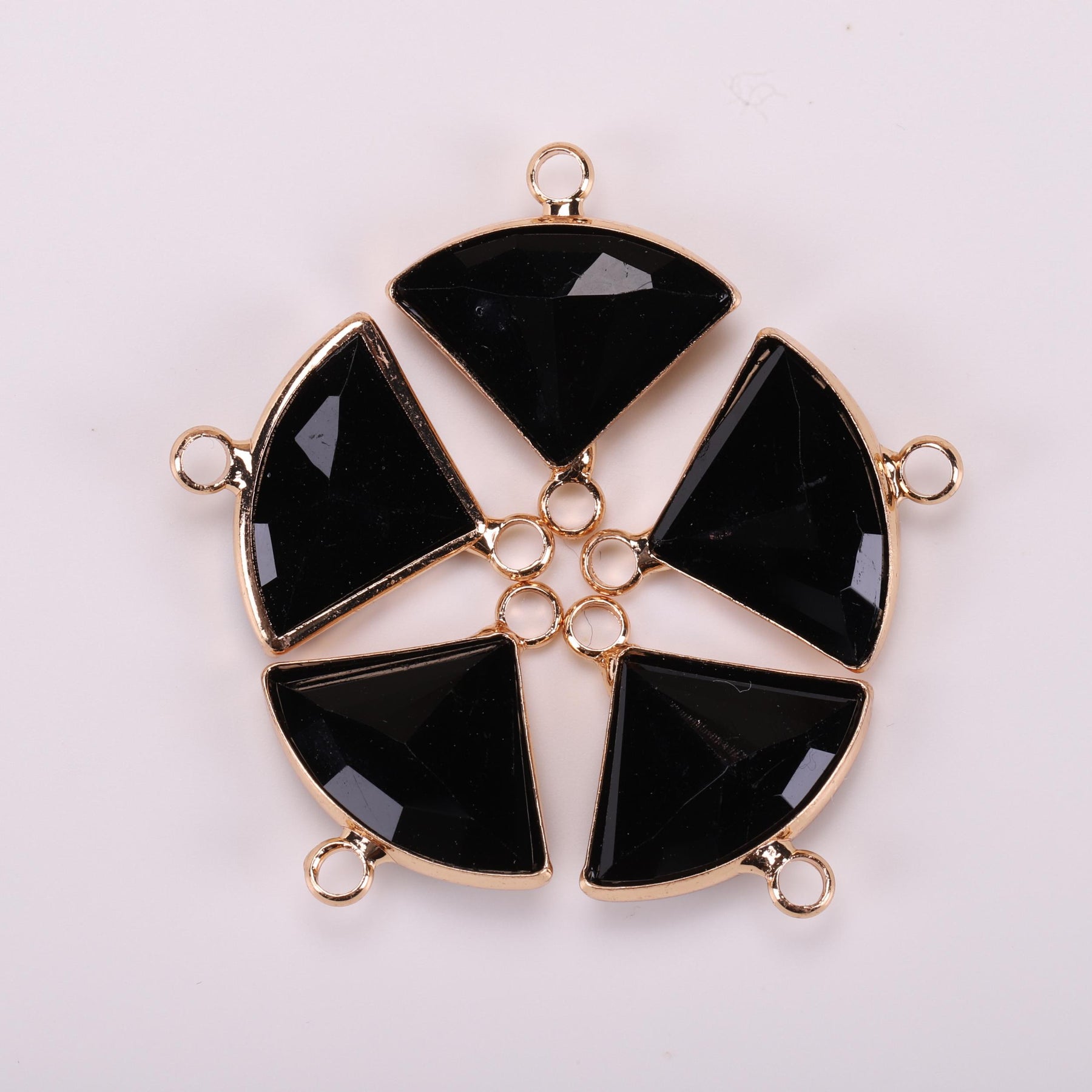 This 5-piece set includes double hanging rhinestone decorations in a copper golden triangular fan design. Ideal for creating your own unique earrings and necklace. Crafted with high-quality materials for a stunning finish.