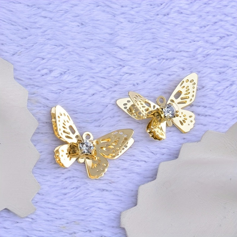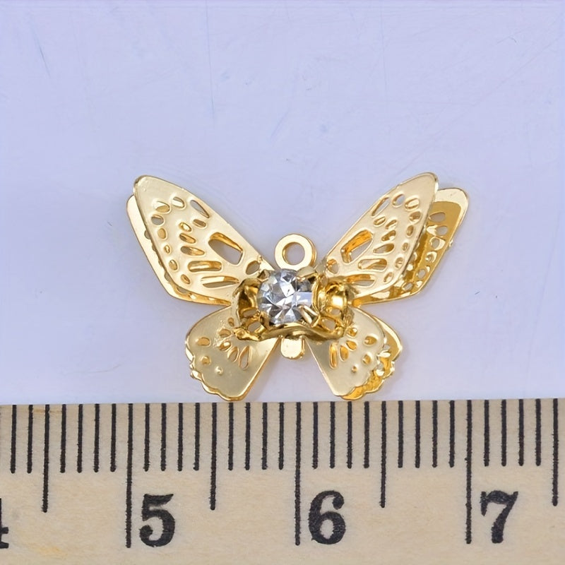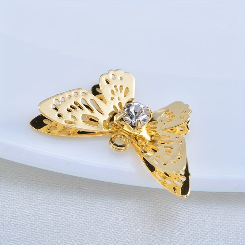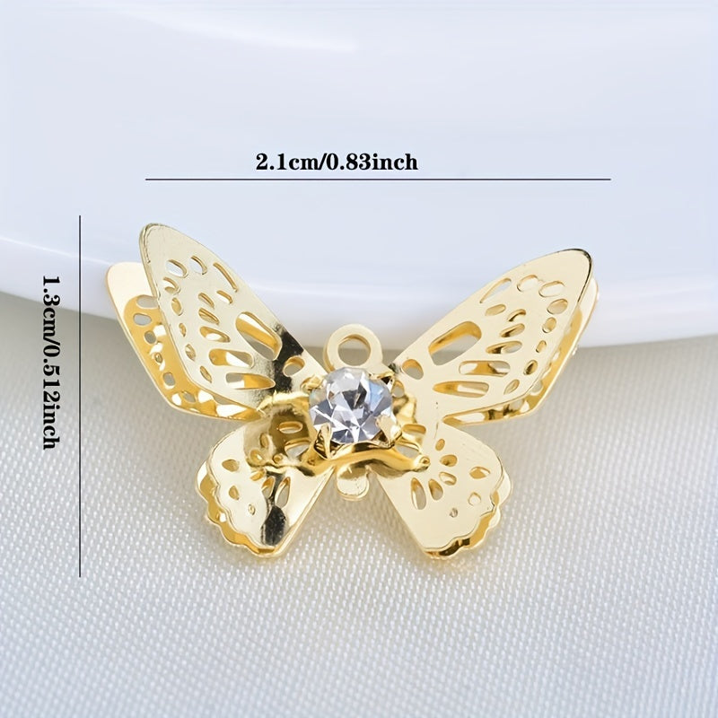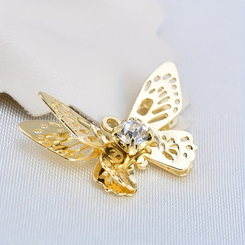 Elegant butterfly pendant crafted from copper with inlaid artificial diamond. Perfect for creating your own unique jewelry pieces.