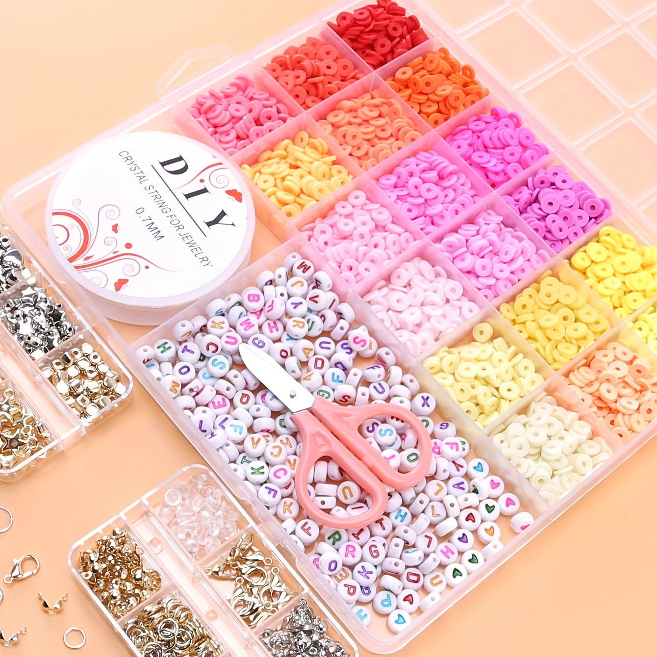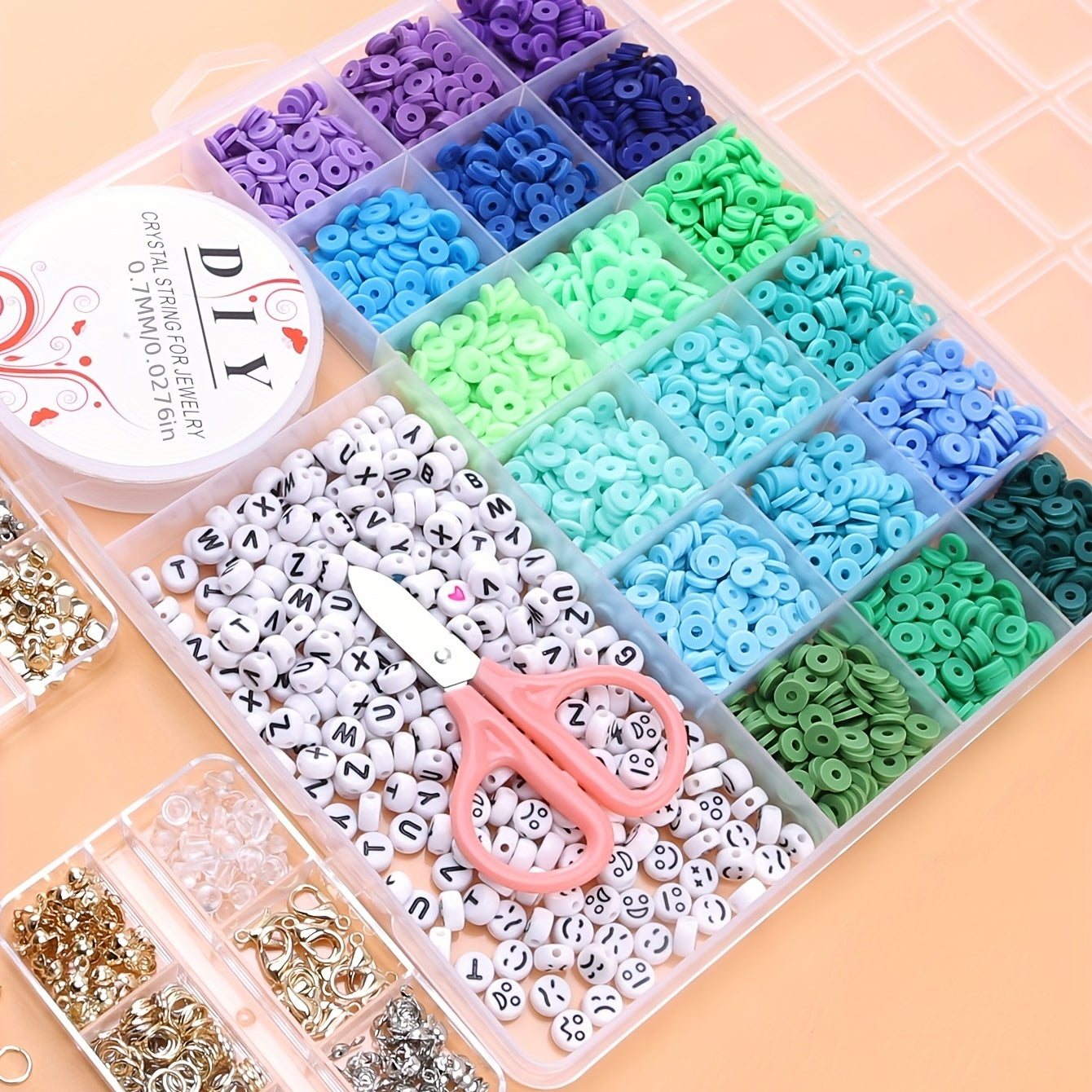DIY Jewelry Kit: Soft Pottery Beads, Elastic Crystal Thread, Letter Beads