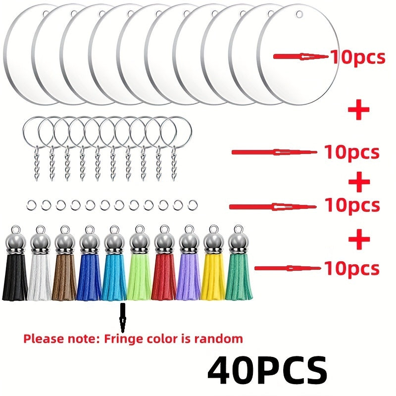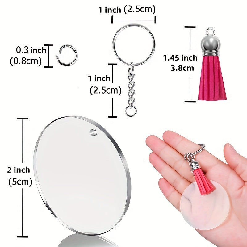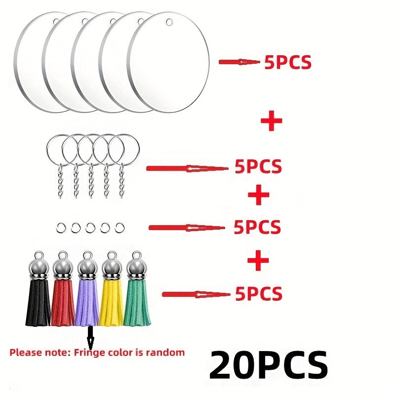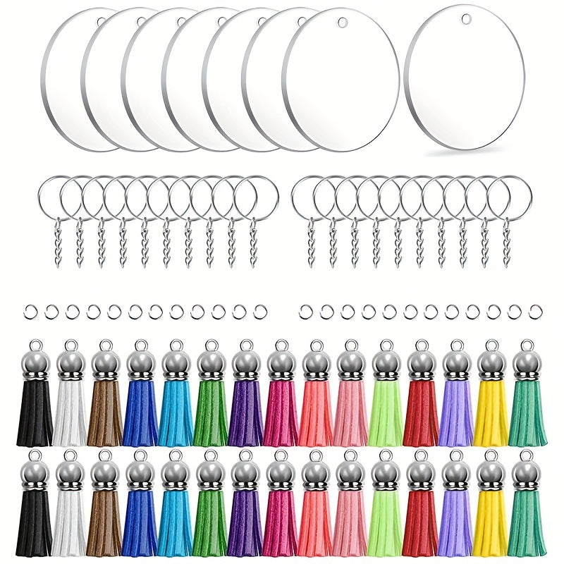 Create unique keychains with this DIY kit including acrylic blank pendants, colorful tassels, and more. Perfect for adding a personal touch to your backpack or keys.