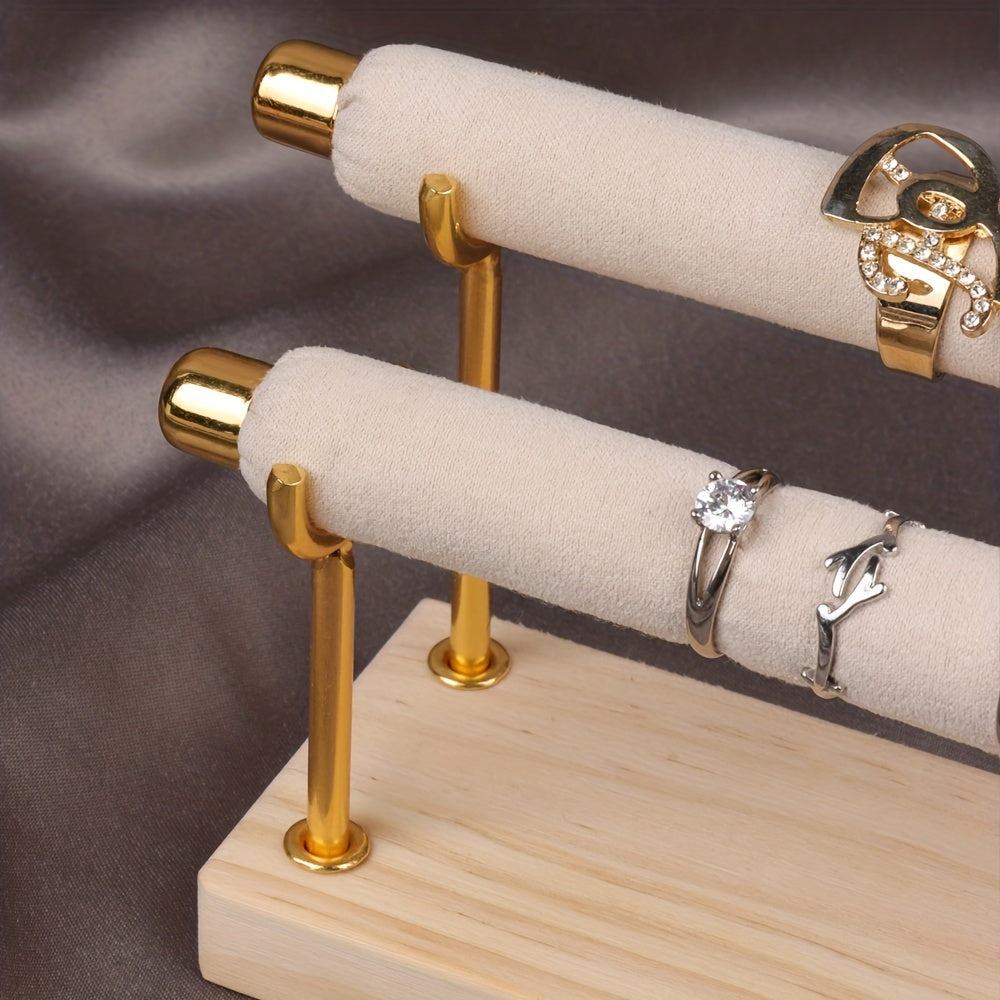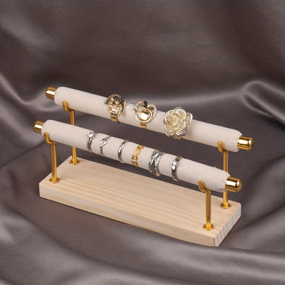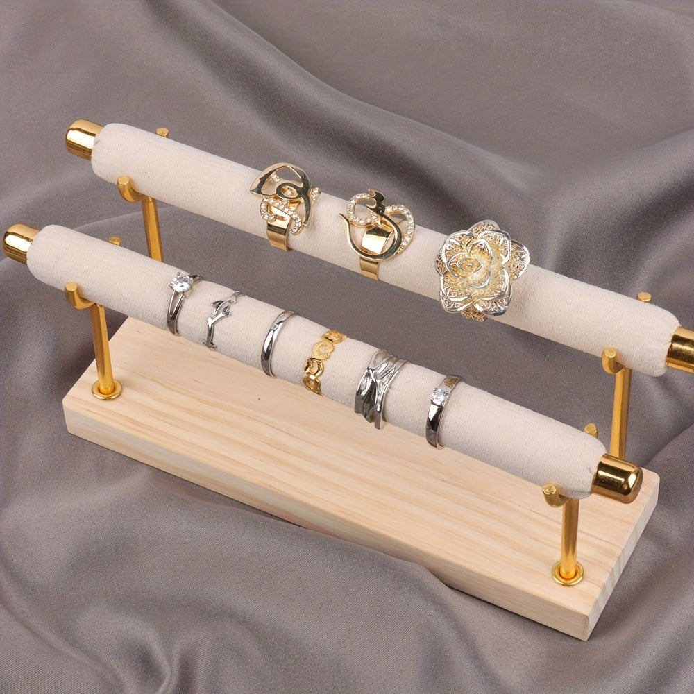 Keep your finger rings organized and on display with this double layer ring display rack. It features flannelette material and offers convenient storage for your jewelry.