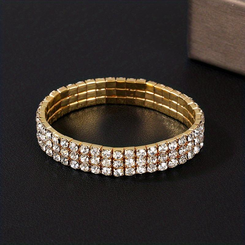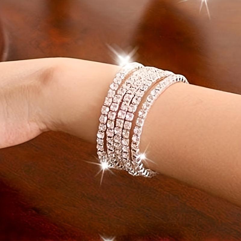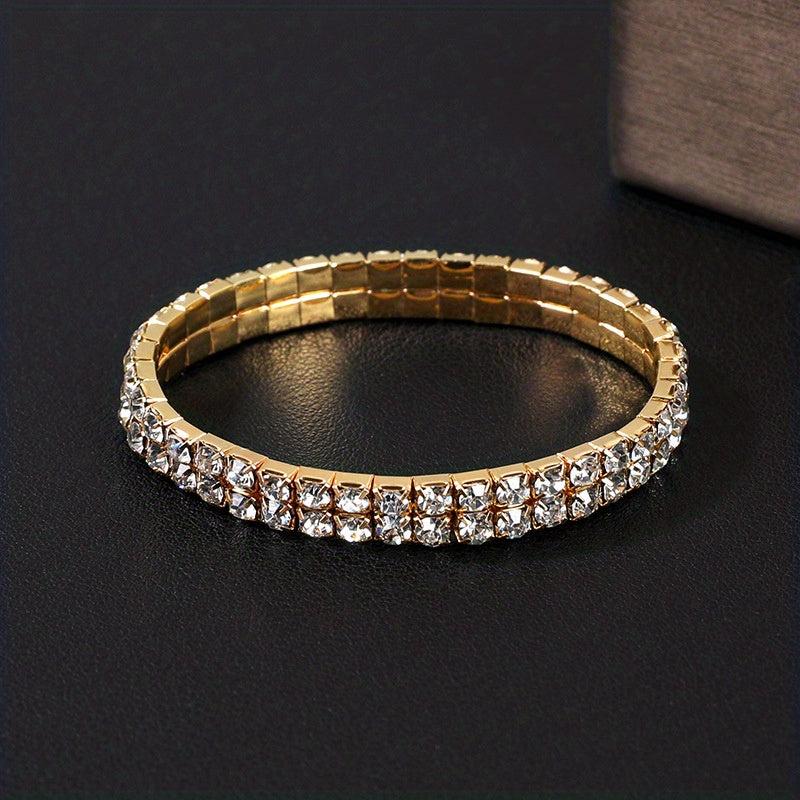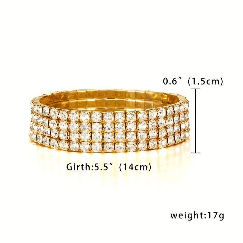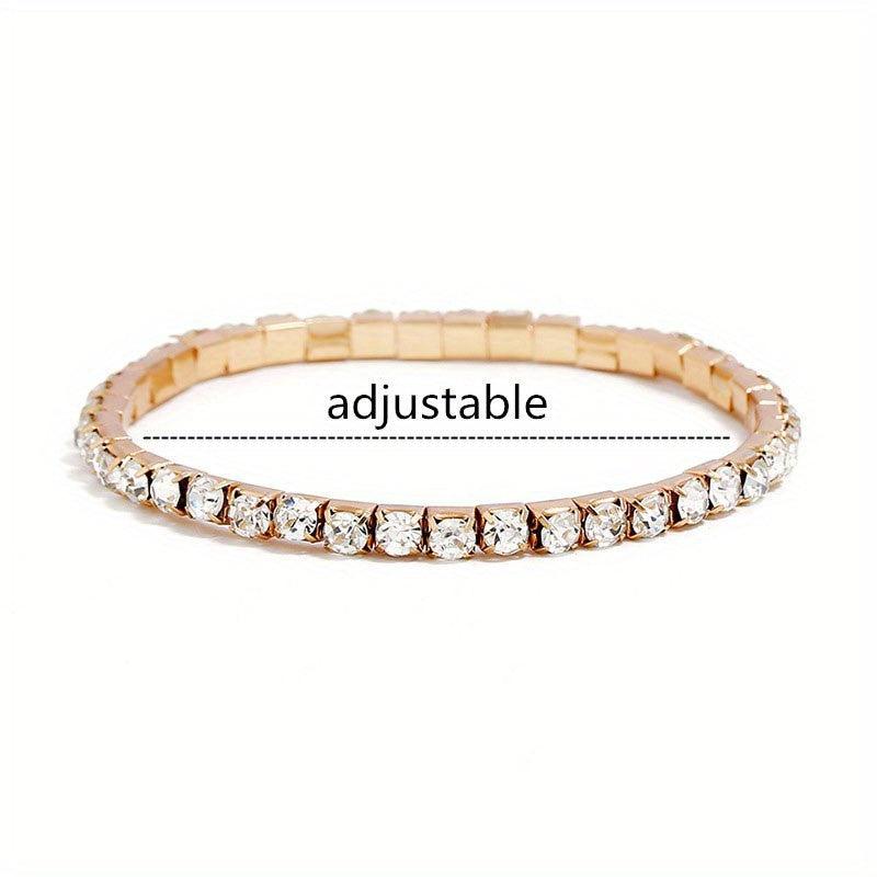 This stunning bracelet features full artificial diamond inlay and an elastic design for versatile wear.