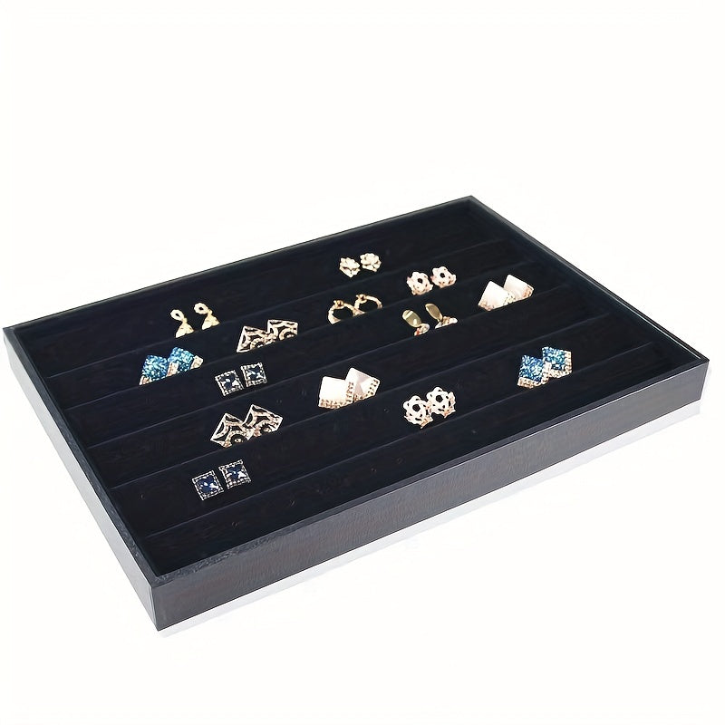 This elegant flannel jewelry tray is perfect for storing and displaying your jewelry. It features a sleek design that adds a touch of sophistication to any space.