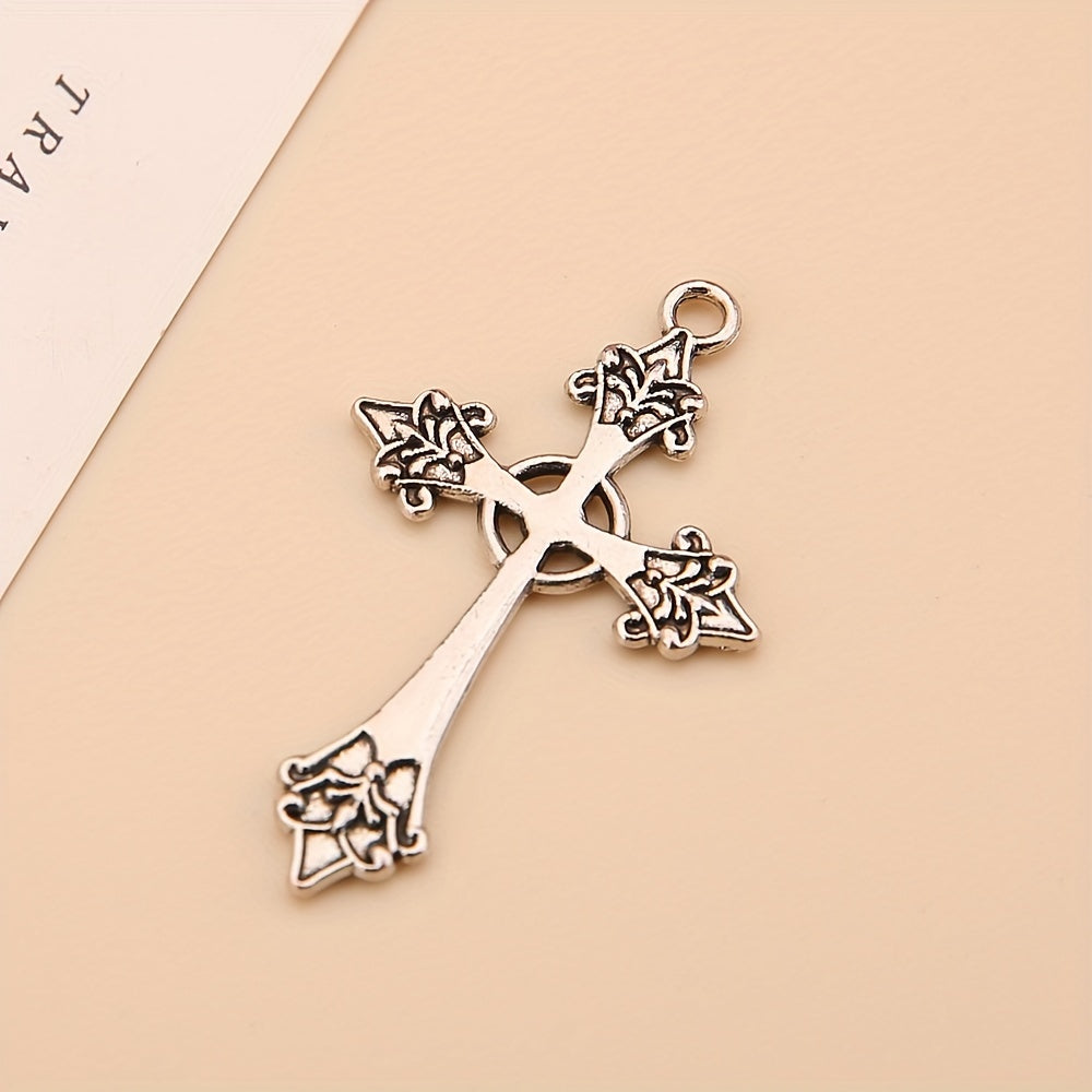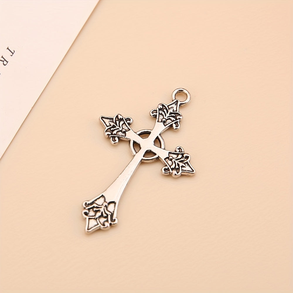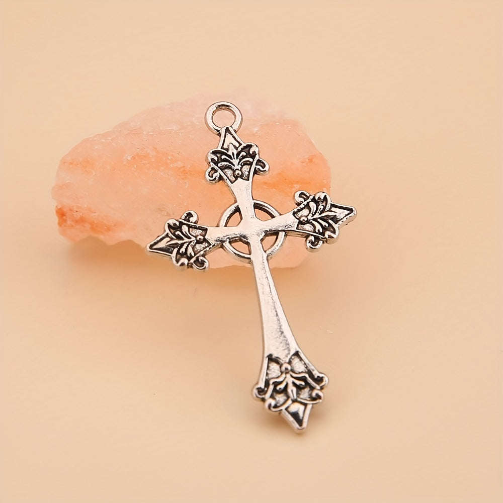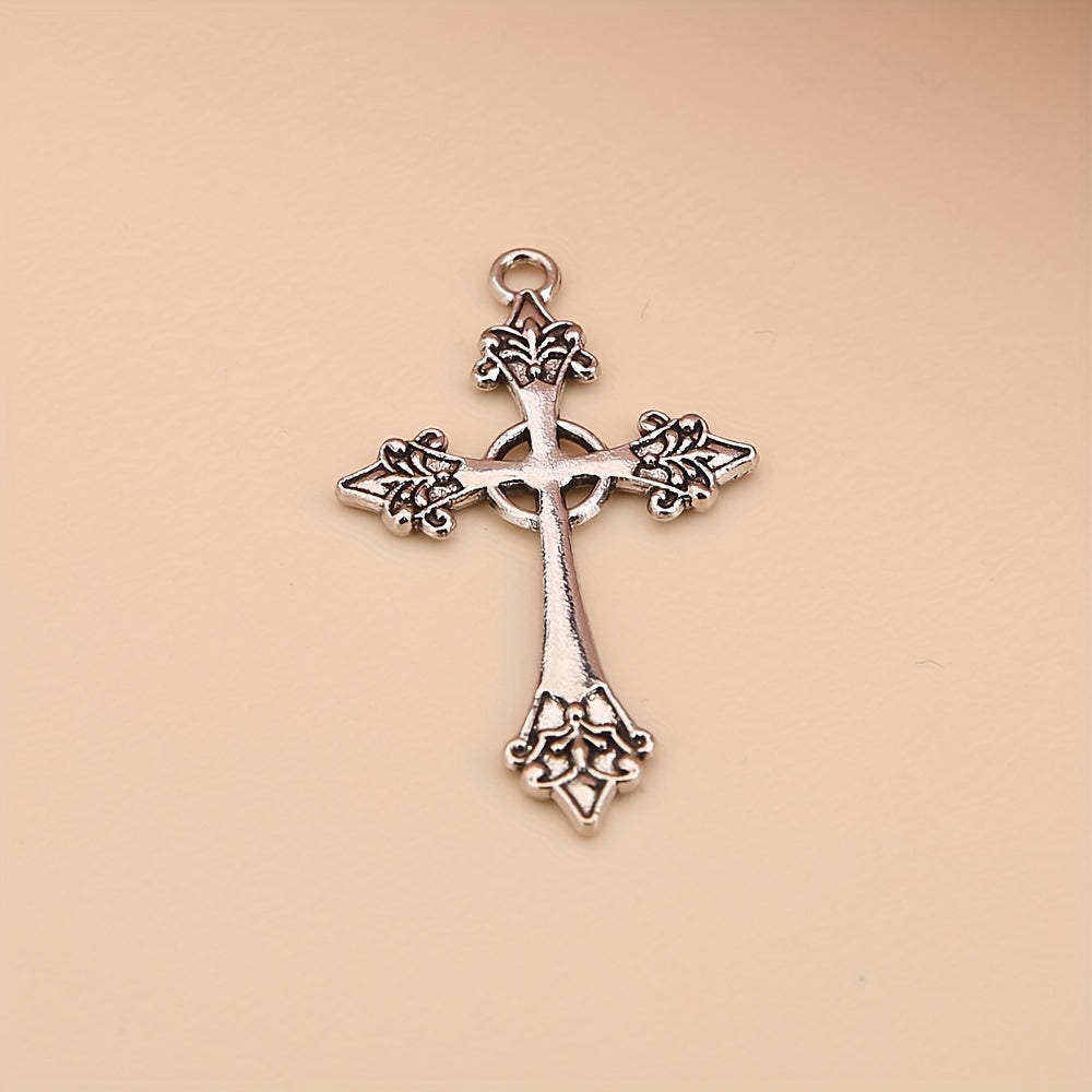 This exquisite round cross pendant features four flowers design, suitable for necklace or keychain. Perfect for jewelry making and handicraft projects.