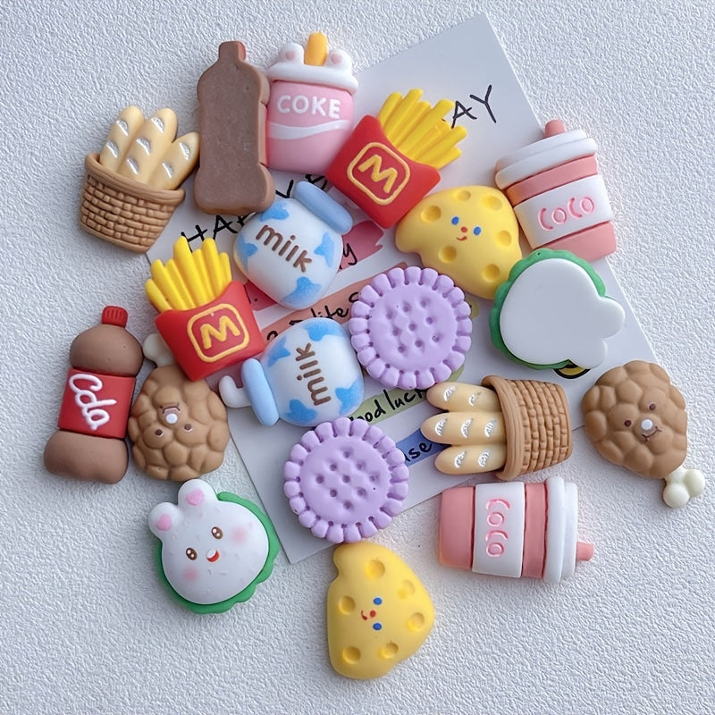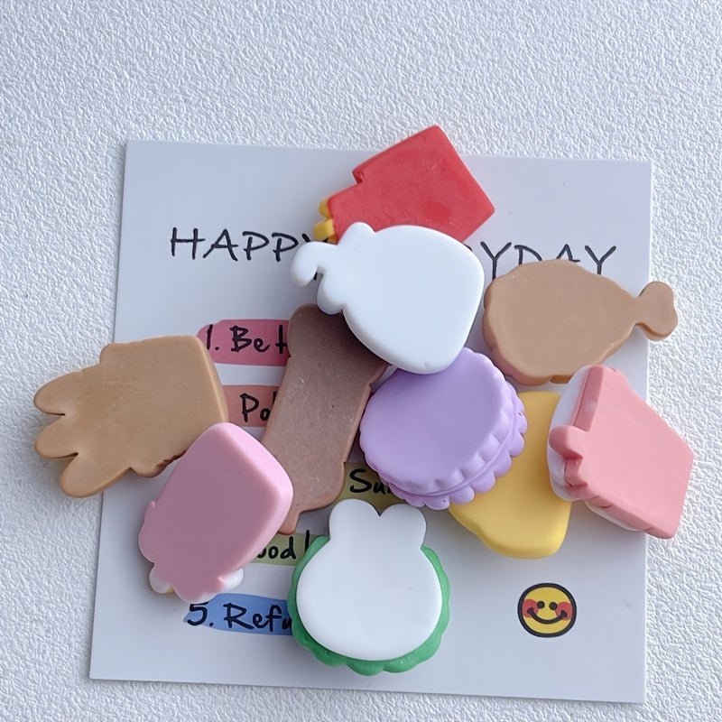 Adorable hair accessories with a fun French fries and burger cartoon design. Perfect for decorating stationery and mobile phone cases.