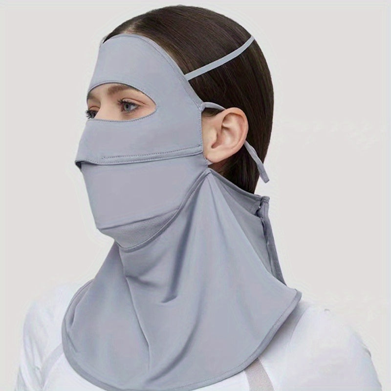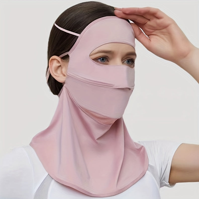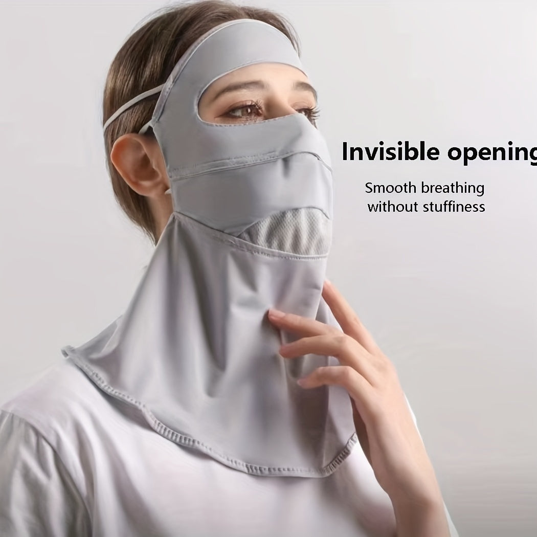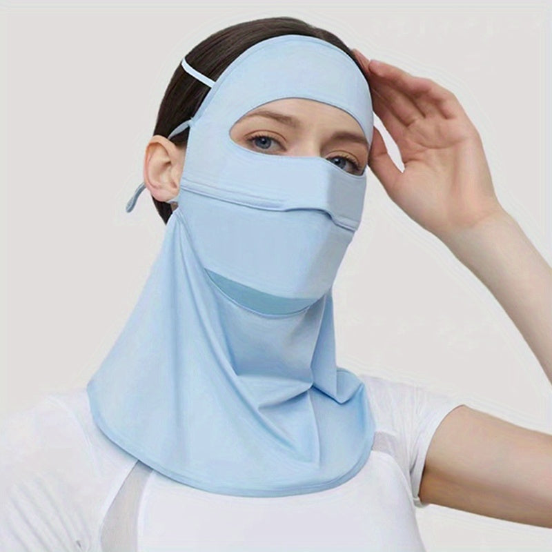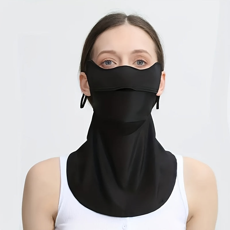 Stay protected from the sun and dust with this full-cover ice mask. The ear hook design ensures a secure fit, and the adjustable elastic provides a comfortable wearing experience. Reusable and dustproof, this mask offers UV protection for your face.