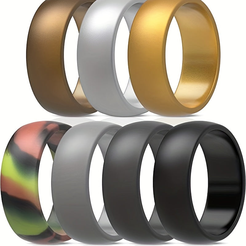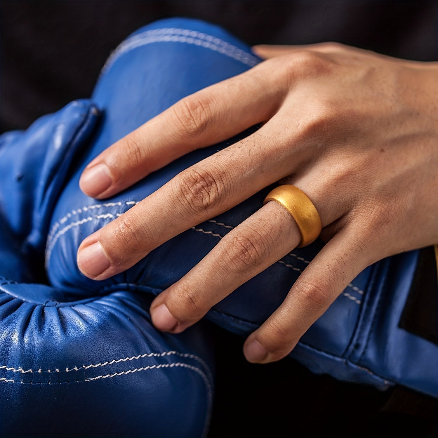 This men's ring is made of high-quality golden silicone, providing a stylish and comfortable accessory for everyday wear.