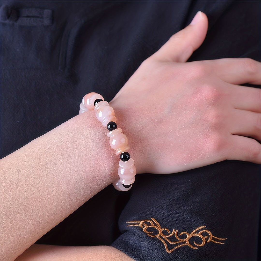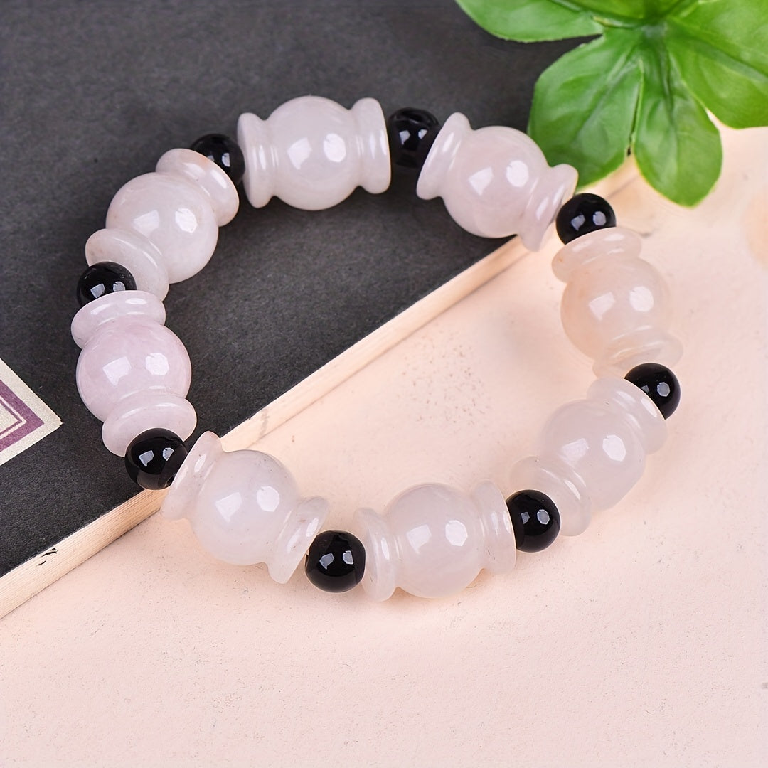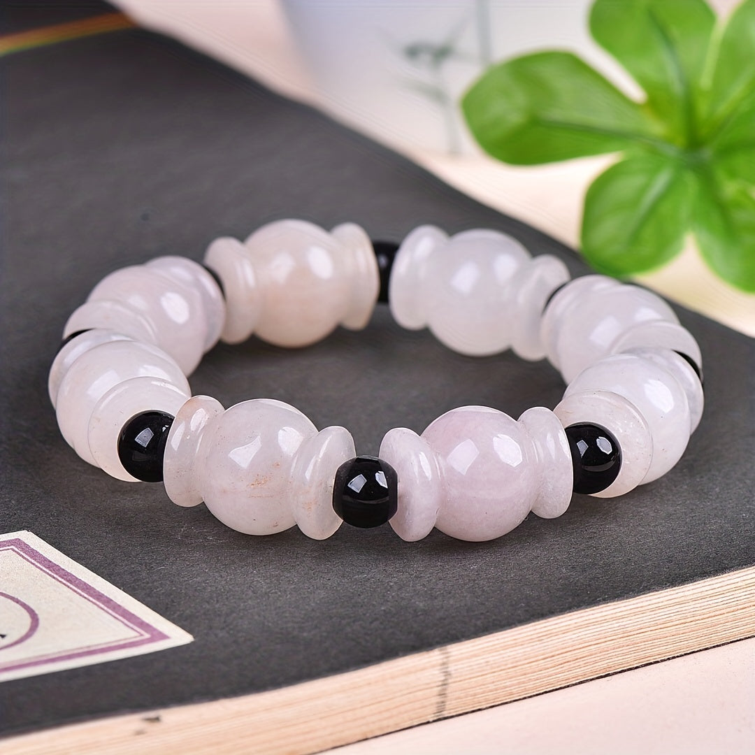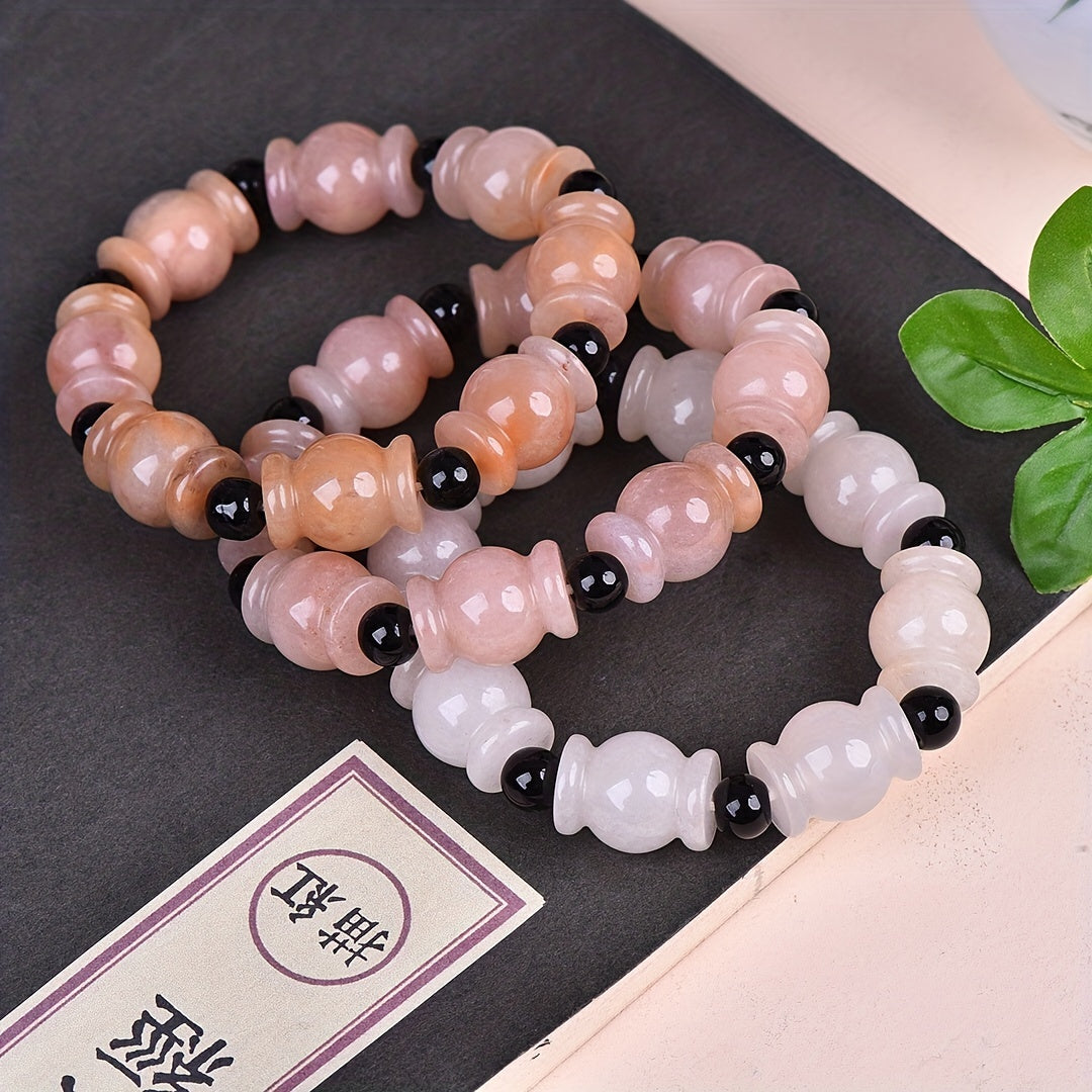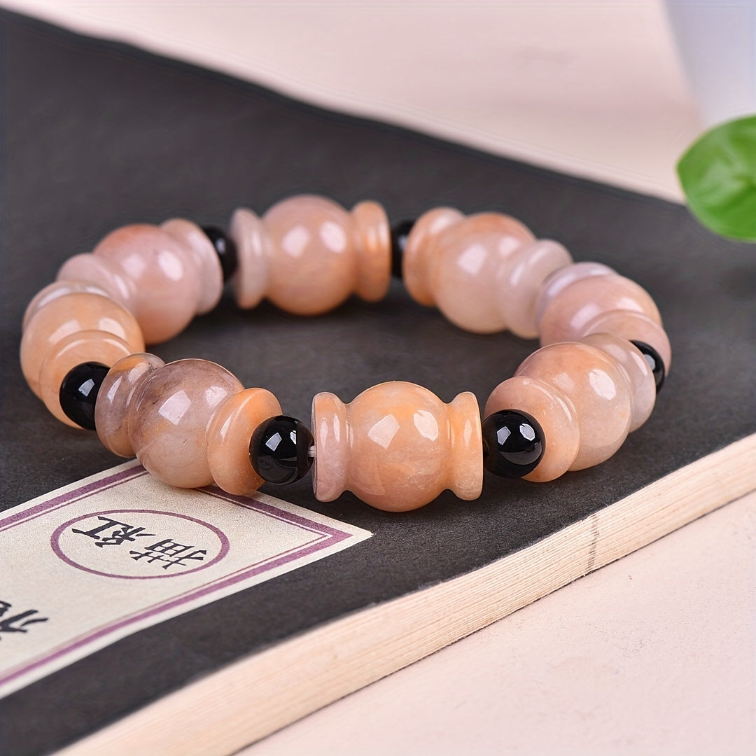 Elegant and charming bracelet featuring golden silk jade with a touch of violet. Perfect for adding a pop of color to any outfit.