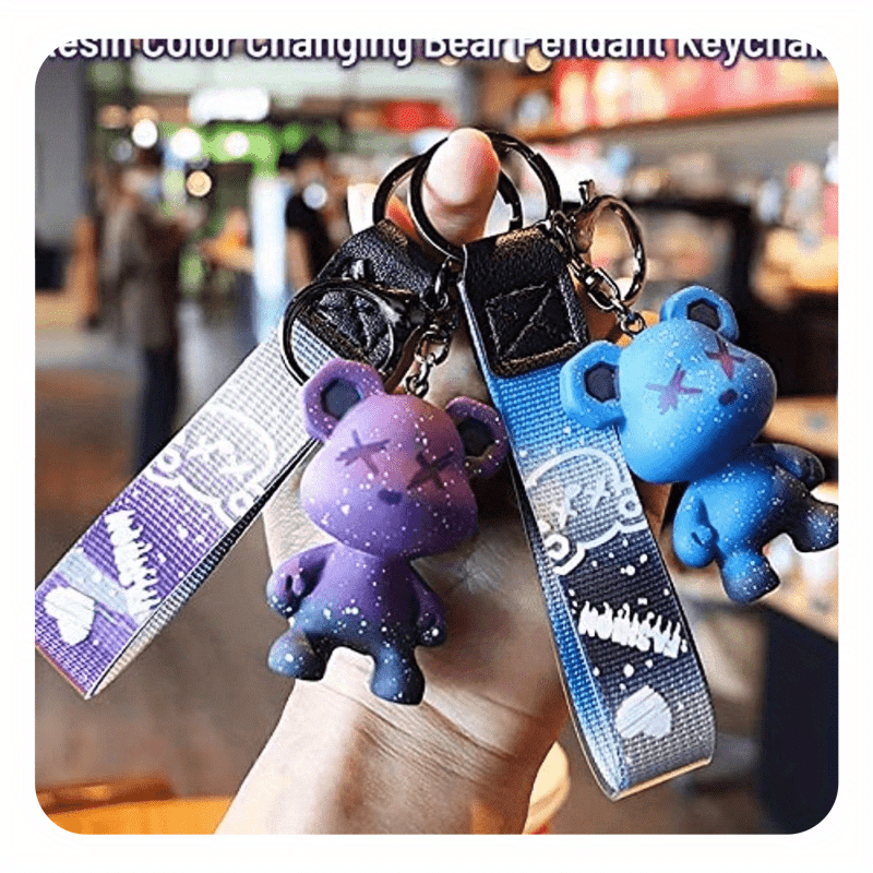 This set includes two adorable keychains featuring gradient resin bear pendants. Perfect for women, men, girls, and boys, these keychains are easy to carry and make a stylish accessory.