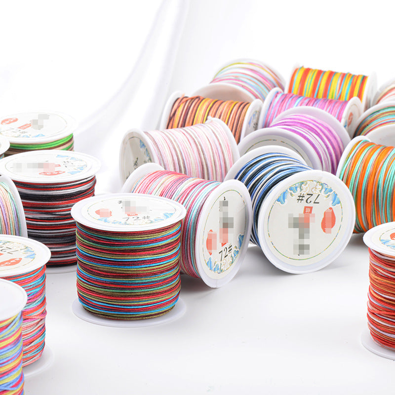 Colorful pendant rope DIY material made of jade thread dyed in gradient segments for unique designs.