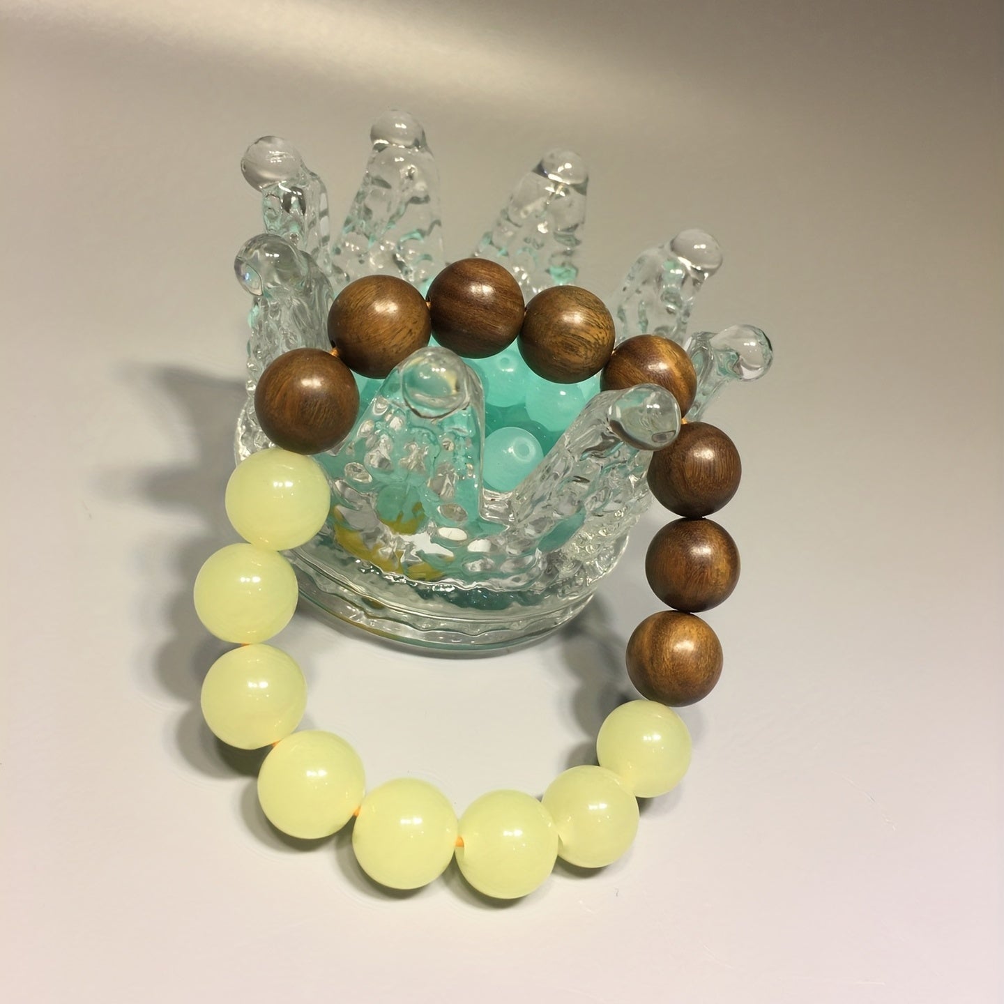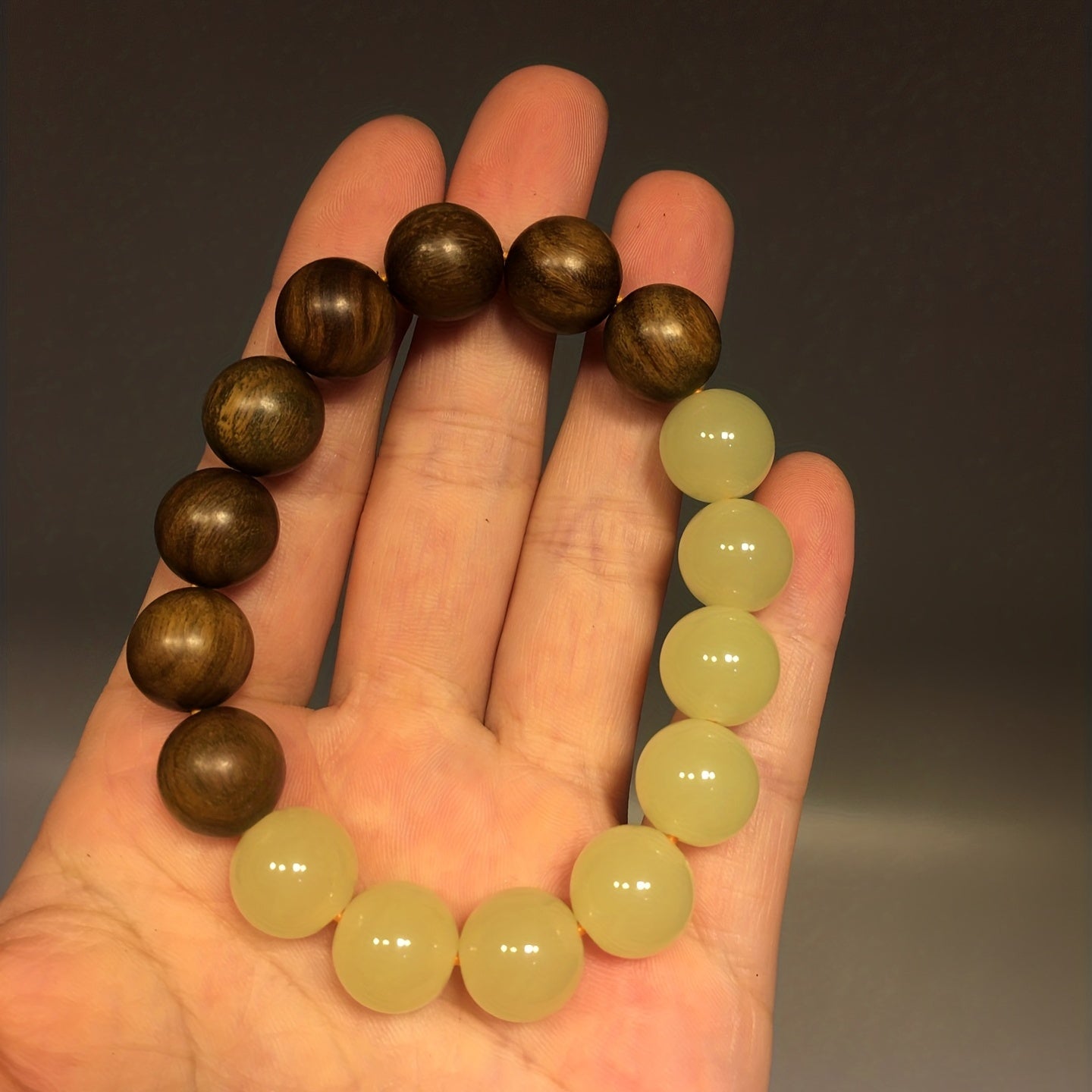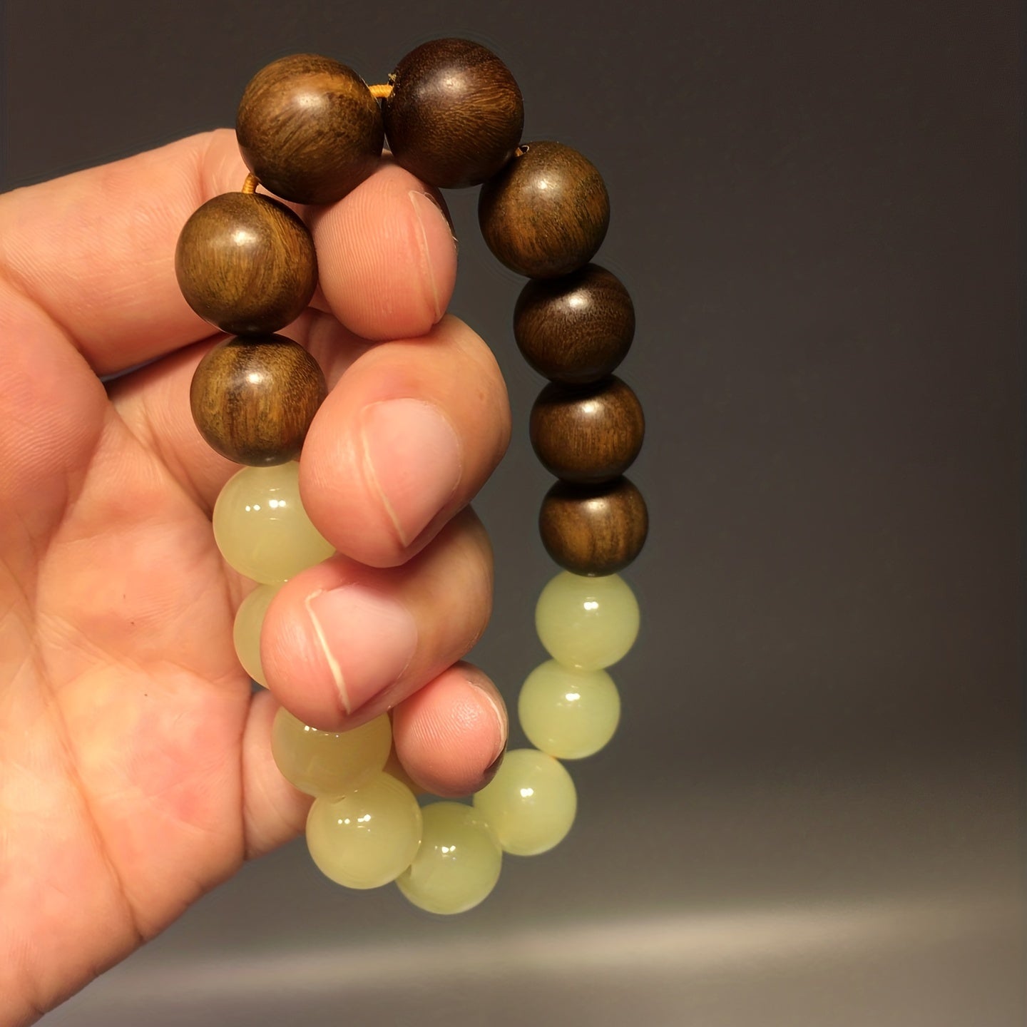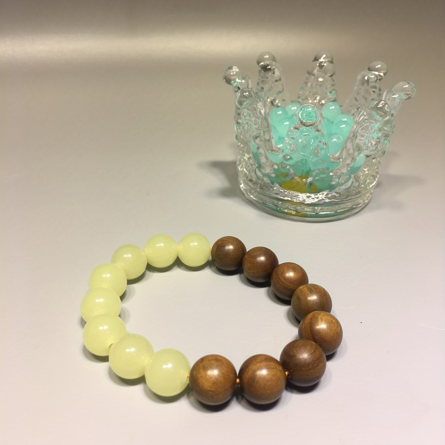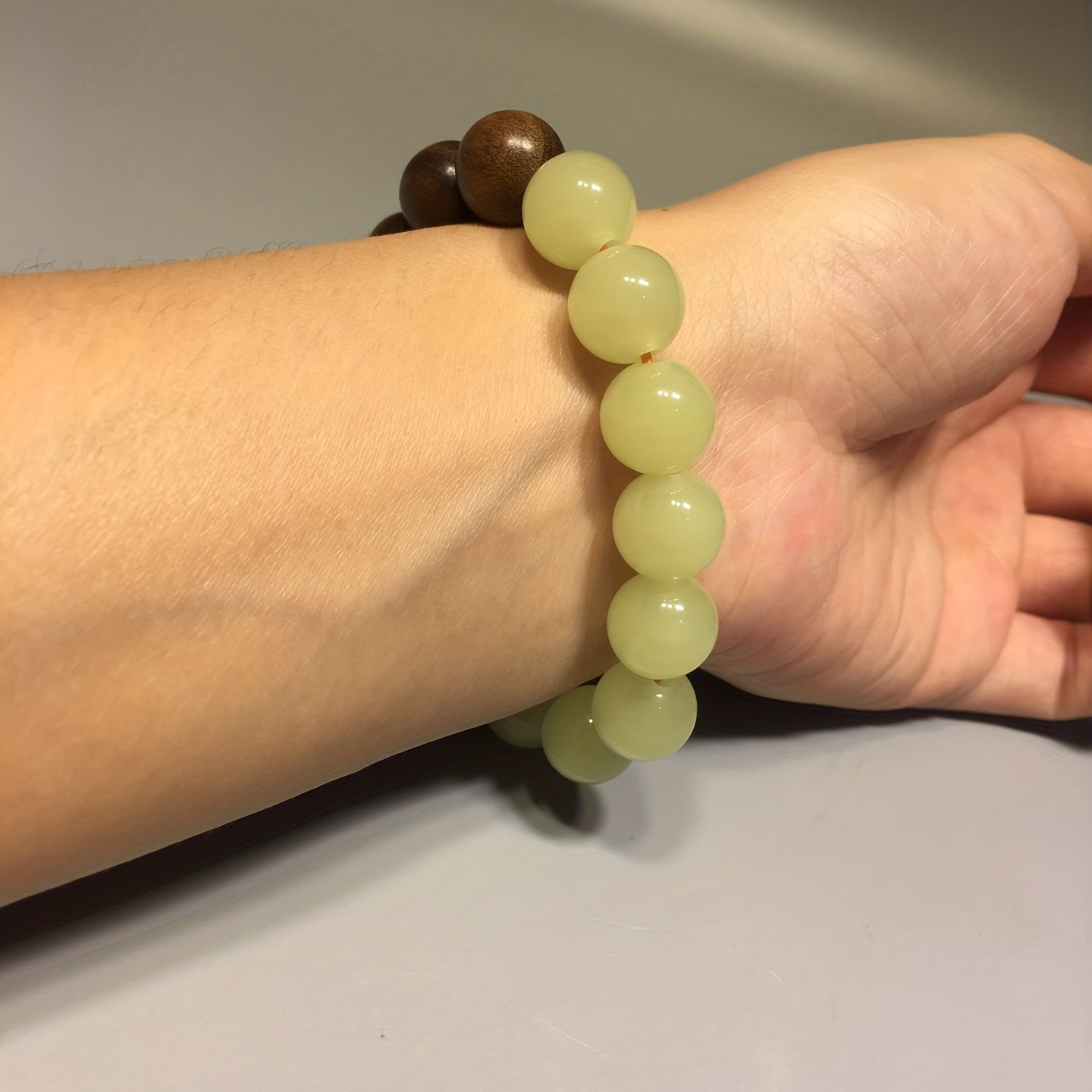 This natural green sandalwood bracelet features 1.2mm Buddha beads on an elastic band. Perfect for men and women, it brings good luck and positive energy. Chakra stones enhance the bracelet's overall appeal.
