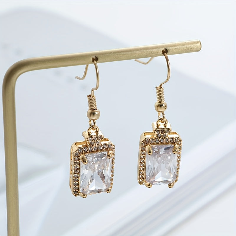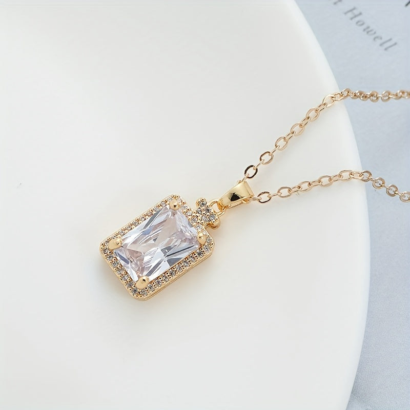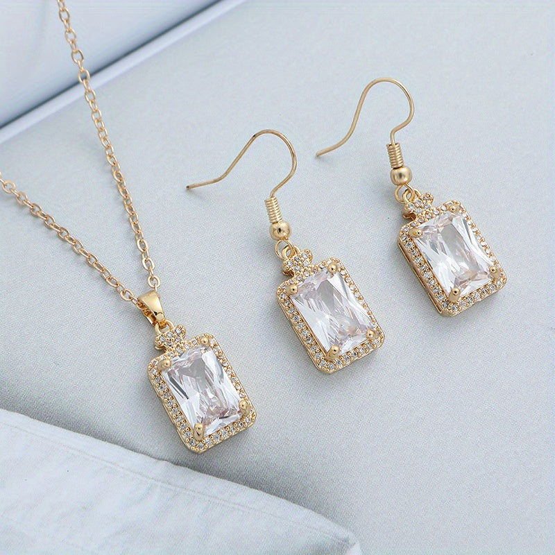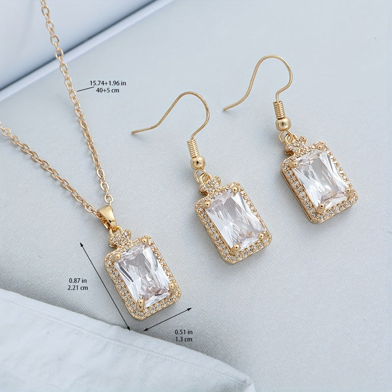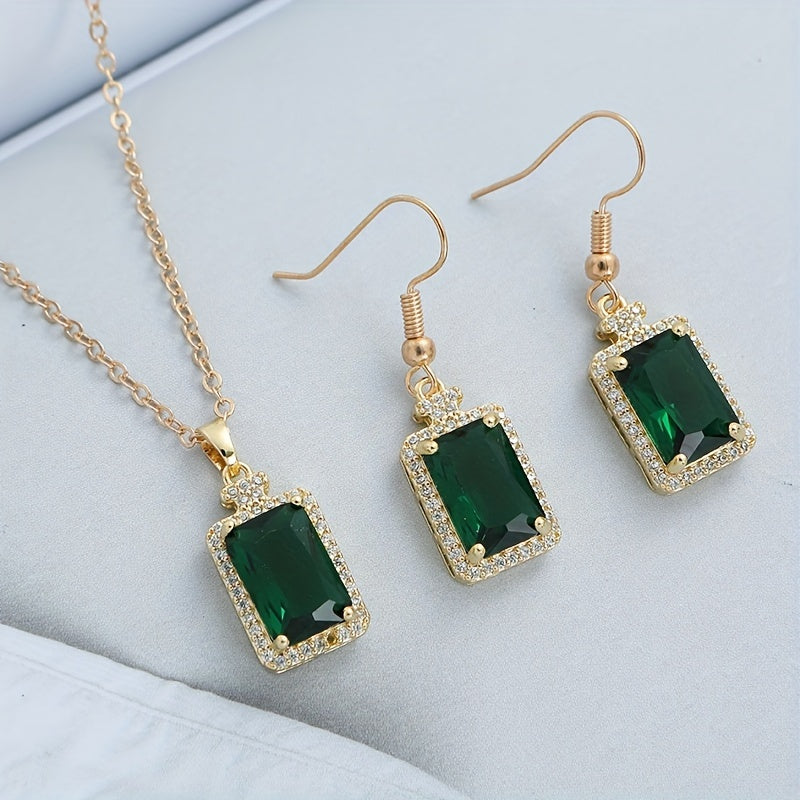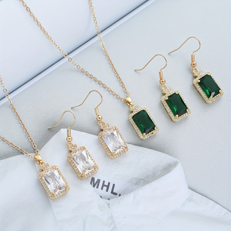 Elegant inlaid square-shaped green zircon jewelry set perfect for weddings, engagements, and banquets.