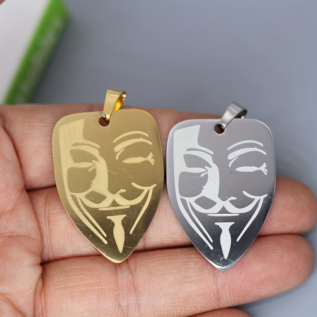 This Guy Fawkes mask men charm is perfect for necklace, bracelets, jewelry crafts, and findings. Made of durable stainless steel.
