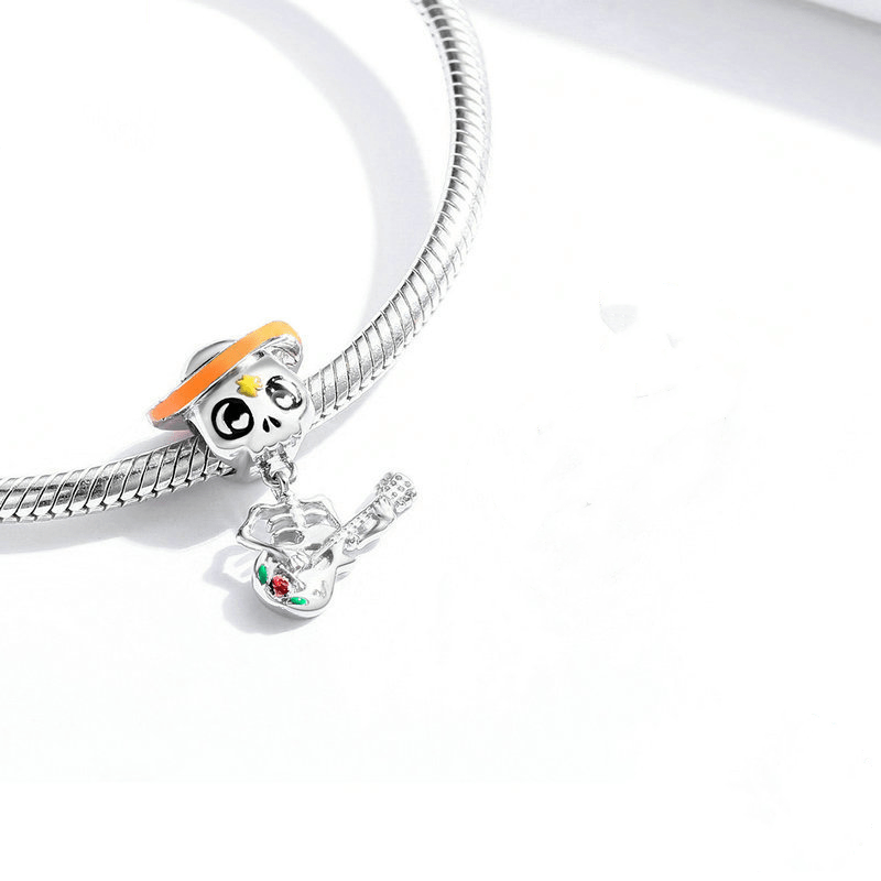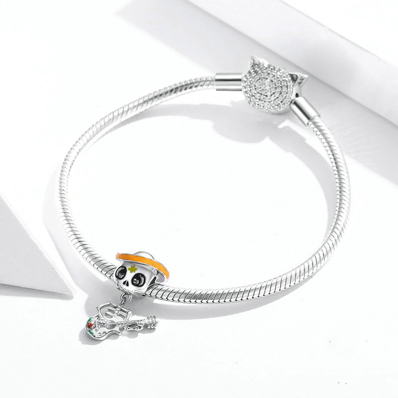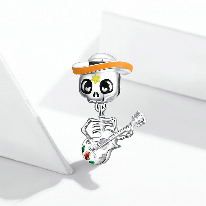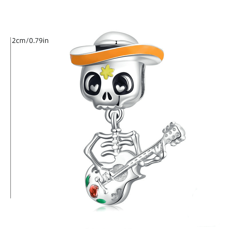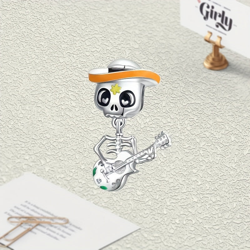Add a spooky touch to your jewelry with this silvery skeleton playing guitar bead. Perfect for Halloween-themed accessories.