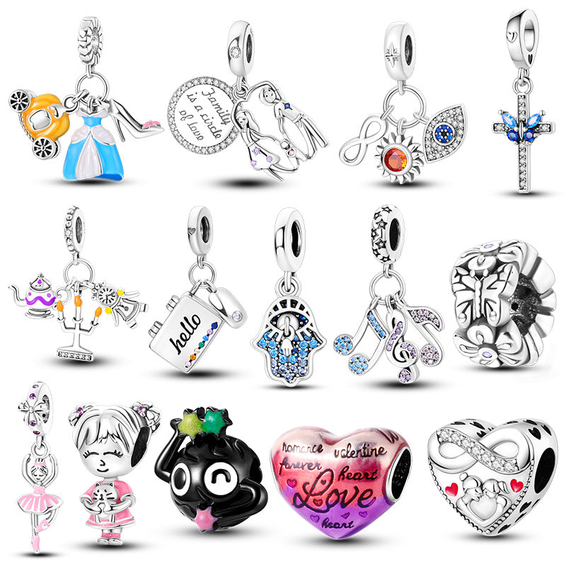 Happy Family Ballet Girl Zirconium Silver Beads Charms Bracelet DIY Jewelry